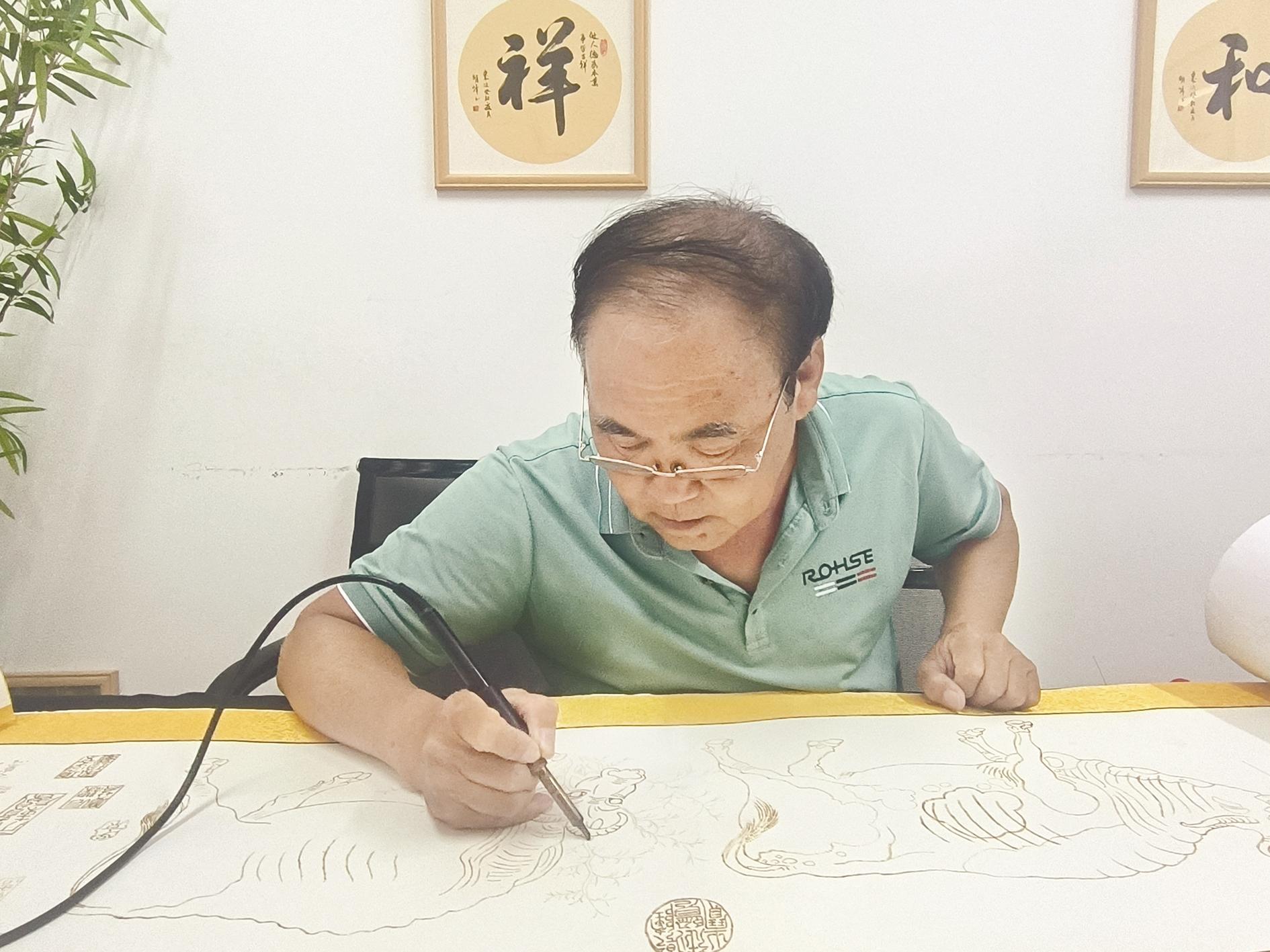“铁笔飞舞留秋意,烙印飘逸注春风”,这句话道出了胡峰对烙画的感情。他认为烙画技艺和其他优秀的传统手工艺一样都是民族的符号与基因,所以无论如何都要守住这份传统并传承下去。