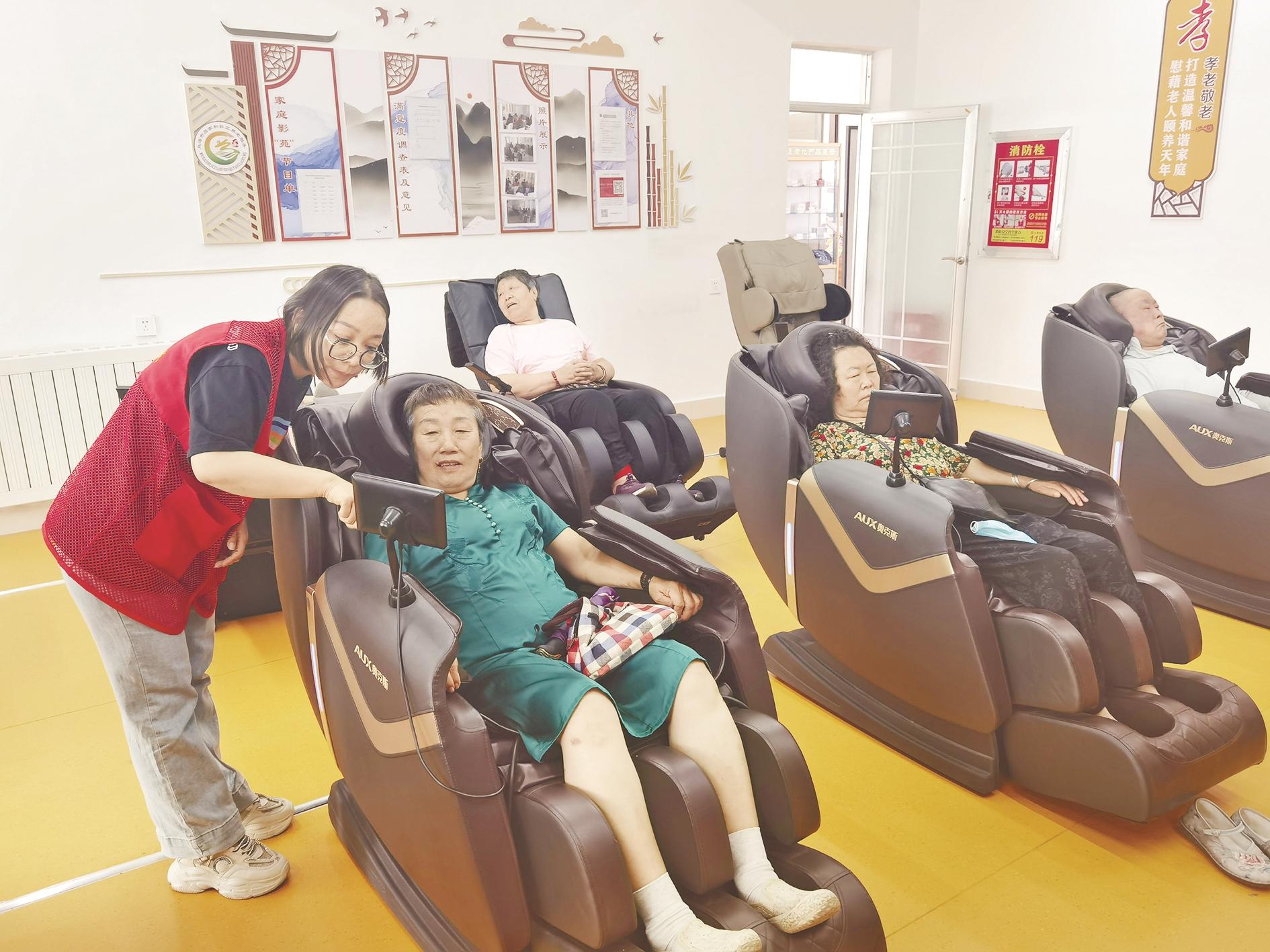 67岁的鲍鲜花吃饭前还在社区康复理疗室里享受了一下全自动按摩椅,差点在按摩椅上睡着了。“太舒服了,在商场见过这按摩椅,但按分钟收费,不舍得。这里全免费使用,体验了一把,真不错。”鲍鲜花对记者说。