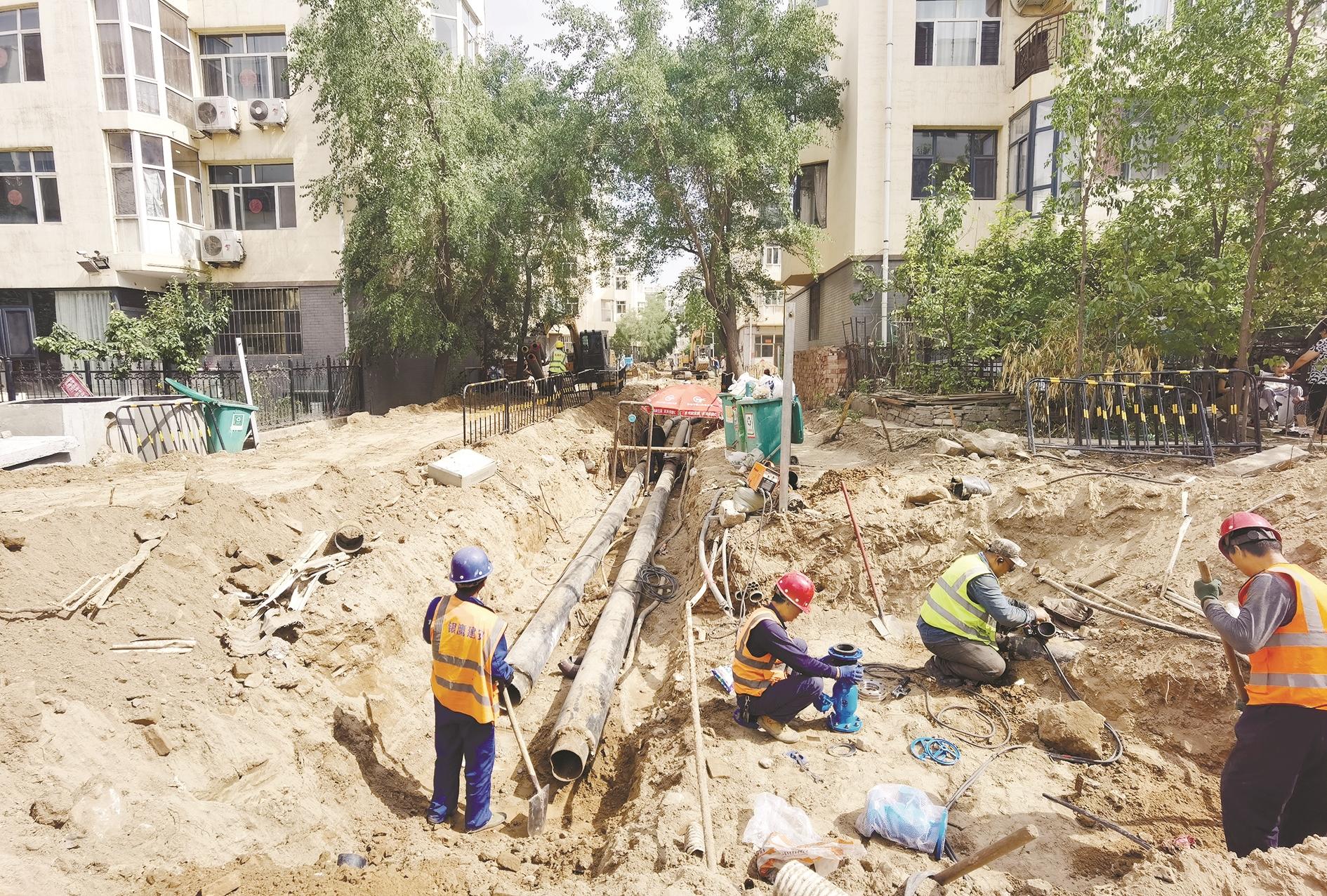 7月10日,记者在海勃湾区银海花园小区看到,改造现场机械轰鸣、往来作业;工人们各司其职,或开沟、或砌井、或进行材料运输;施工区域用围挡相隔,提醒往来居民。现场施工负责人黄先生介绍,施工队5月20日进场开工,预计8月底9月初完工。此次项目包括小区给排水、电力、暖气等管网更换,紧接着进行小区硬化、绿化、美化、亮化、技防等工程,此外还要进行单元防盗门更换、楼道粉刷等更为细致的施工。“每一项工程都交由专业队伍进行,水暖、电力等各司其职。就拿看似简单的管道铺装来说,只有开沟、布管、回填三个工序,其实,仅布管这一项就有很多内容,有管道走向、焊接、砌井等等。回填时也要先填护管沙,再用合格的土壤填埋。银海花园小区地下的土壤中石块非常多,整体路面的土壤只能运来新土,重新铺设。”黄先生表示,希望最终能够交上一份满意的答卷。