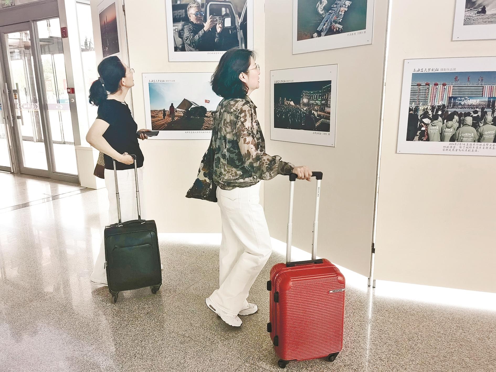 近日,由内蒙古机场集团乌海分公司、市区域经济合作局主办,市艺术摄影学会承办的《乌海蓝天架彩虹》摄影展在乌海机场候机厅开展。本次展览通过镜头视角跨行业、多角度地展示了乌海机场繁忙有序的工作状态、通航省市的企业落户乌海办厂兴业的崭新气象,以及通航城市的旖旎风光。循着镜头的视角,可以感受到航空运输在助力乌海经济社会发展中所发挥的重要作用。 (靳婧 摄)