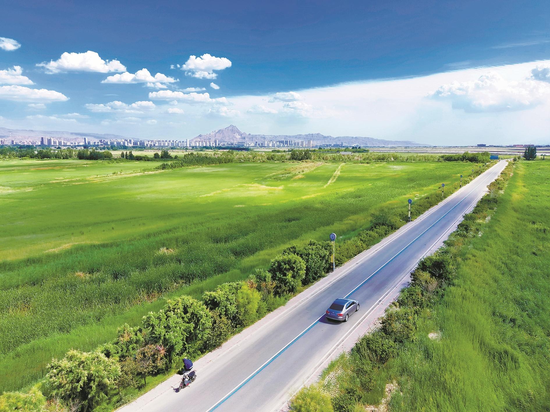 盛夏时节,龙游湾国家湿地公园内芦苇葱茏、湖泊湛蓝、栈道蜿蜒,构成一幅优美的生态画卷,成为人们休闲消夏的好去处。(王超 摄)