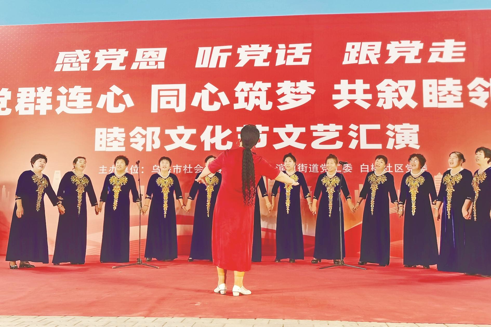 近日,市社会科学界联合会联合海勃湾区滨河街道党工委、滨河街道白楼社区党委举办了以“感党恩、听党话、跟党走——党群连心 同心筑梦 共叙睦邻情”为主题的文艺汇演。志愿者表演了歌舞、合唱、二人台、乐器演奏、模特走秀等节目,表达了对党和祖国的热爱之情,让群众体验了一次“沉浸式”的北疆文化熏陶,引导群众进一步铸牢中华民族共同体意识。