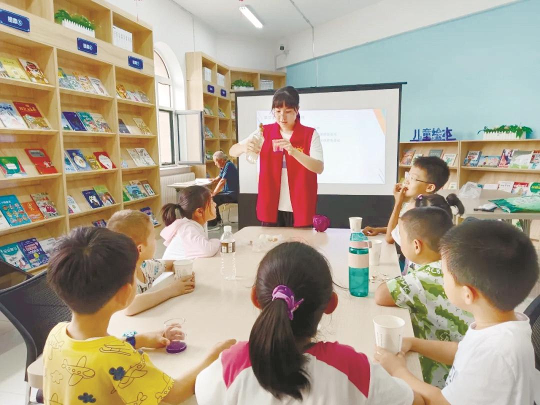 7月24日,市图书馆开展“酸碱指示剂”“漂浮的鸡蛋”科学小实验活动,由小读者们动手制作,志愿者讲解其中的原理。本次活动丰富了孩子们的假期生活,激发了他们的探索精神和创新思维。(靳婧 摄)