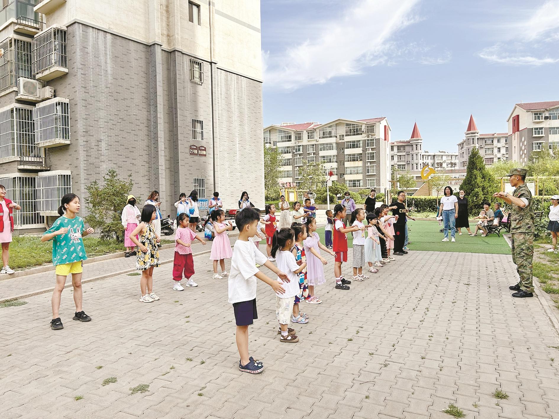 近日,海勃湾区滨河街道白楼社区开展“学军人风采 强自身素质——国防教育‘军体拳’课堂”主题活动。活动中,社区的小朋友们在教练的指导下进行热身运动,学习军体拳的基本动作和技巧,提高身体素质,进一步激发了社区青少年儿童的爱国热情。
