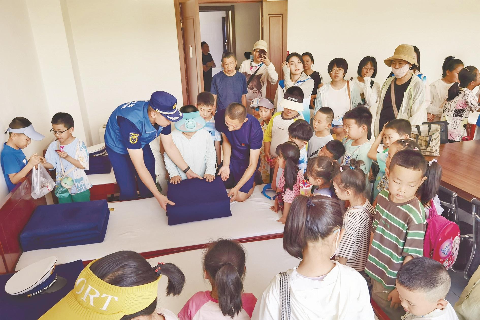 近日,共青团海勃湾区委员会联合海勃湾区滨河街道办事处、滨河街道白楼社区开展了“安全伴‘童’行 致敬‘火焰蓝’”消防安全宣传活动。活动中,辖区青少年来到市消防救援支队滨河消防救援站,通过实地参观、沉浸式学习、互动式体验等形式,学习火灾预防、消防器材使用等知识。(黄建飞 摄)