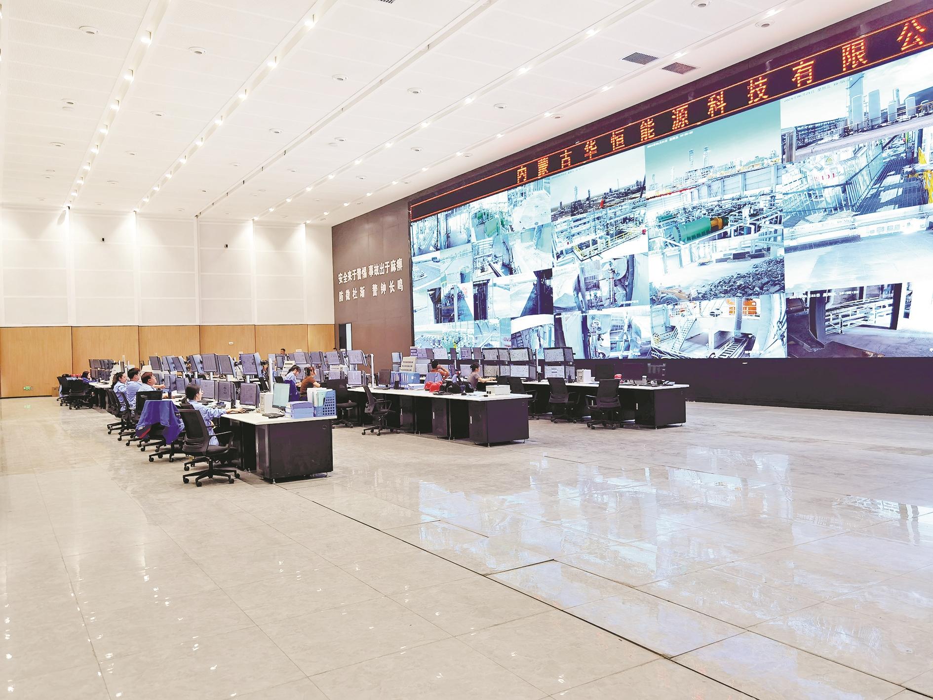 内蒙古华恒能源科技有限公司PTMEG、PBAT新型材料产业链一体化项目一期建设完成并投入试生产以来,整体运行平稳。图为近日,在内蒙古华恒能源科技有限公司中控室内,一排排电子设备整齐排列,工作人员正紧盯屏幕观察各生产设备参数,确保试生产平稳有序。 (马乐 摄)
