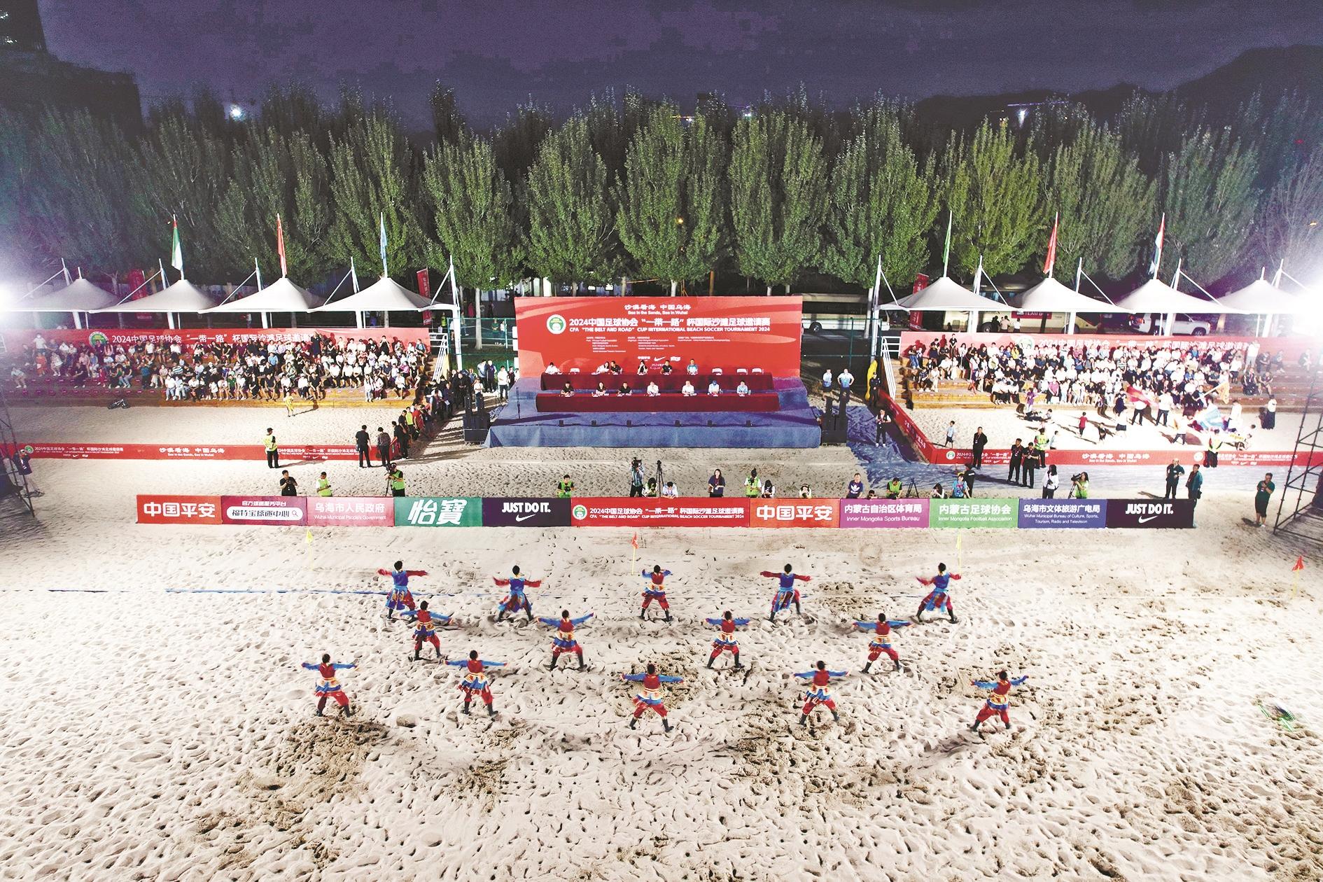8月23日至25日,2024中国足球协会“一带一路”杯国际沙滩足球邀请赛在内蒙古乌海市盛大举办。(高瑞鹏 摄)