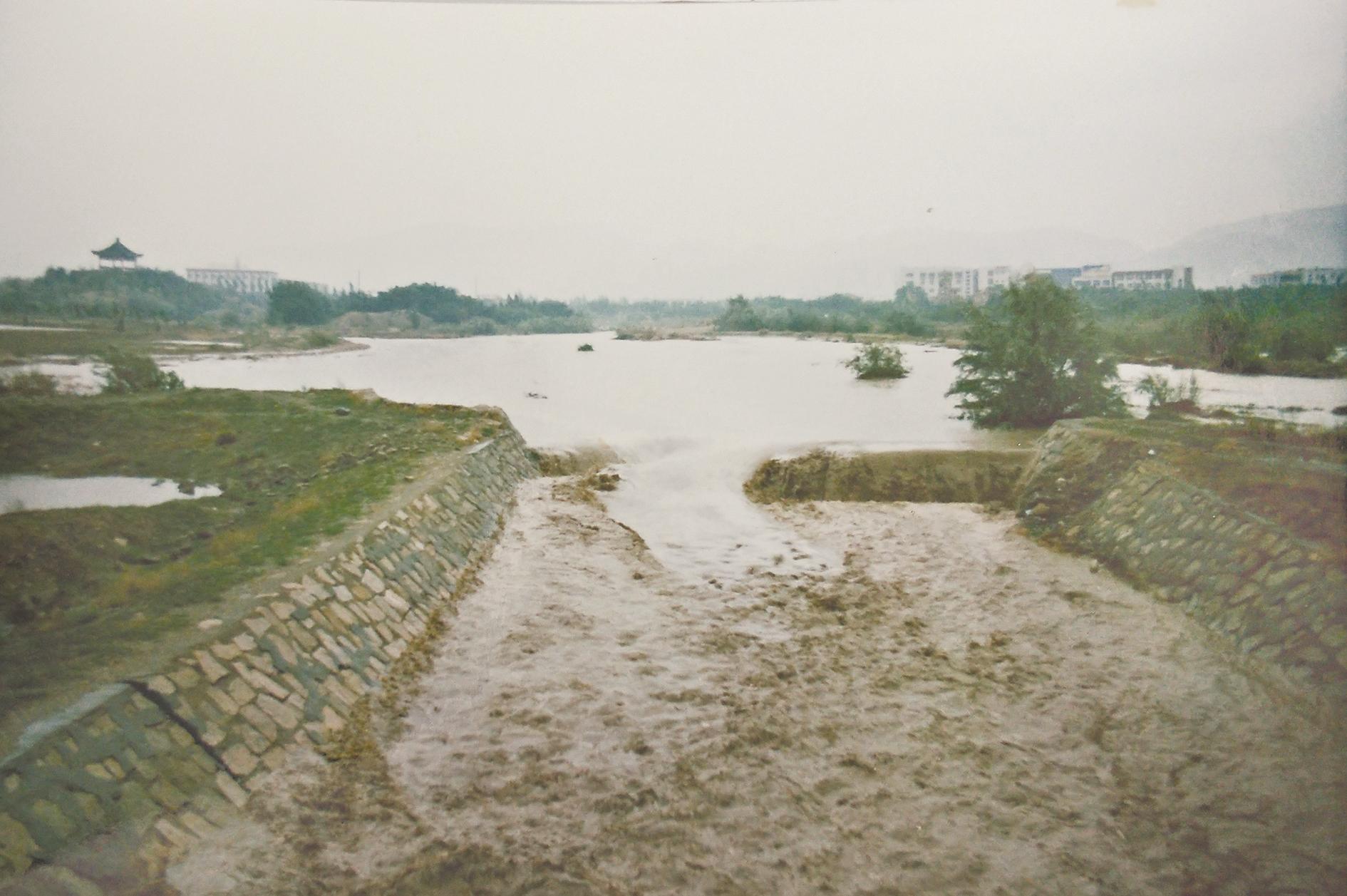 “照片中是20世纪90年代市人民公园开启防洪闸泄洪时水淹没‘西大滩’时的景象。”曾在市人民公园工作过的王海兵介绍说,“西大滩”地处公园西侧,因有一大片荒滩且位置靠西而得名,其最大的作用就是泄洪。每年防洪闸开启后,经由泄洪河槽排出的水都要流经“西大滩”。“西大滩”周围有树木,也有苗圃,很少有人到此游玩,非常荒凉,由一堵墙将其与海河路(今人民路)相隔。每年春季,园林工人都要在“西大滩”开展植树造林工作。有一年,职工们在新开辟的土地上栽种了千余棵樟子松。由于土地引水渠尚未贯通,新植树木无法及时浇水,职工们就用水罐车一株株地浇,保证树木的成活率。