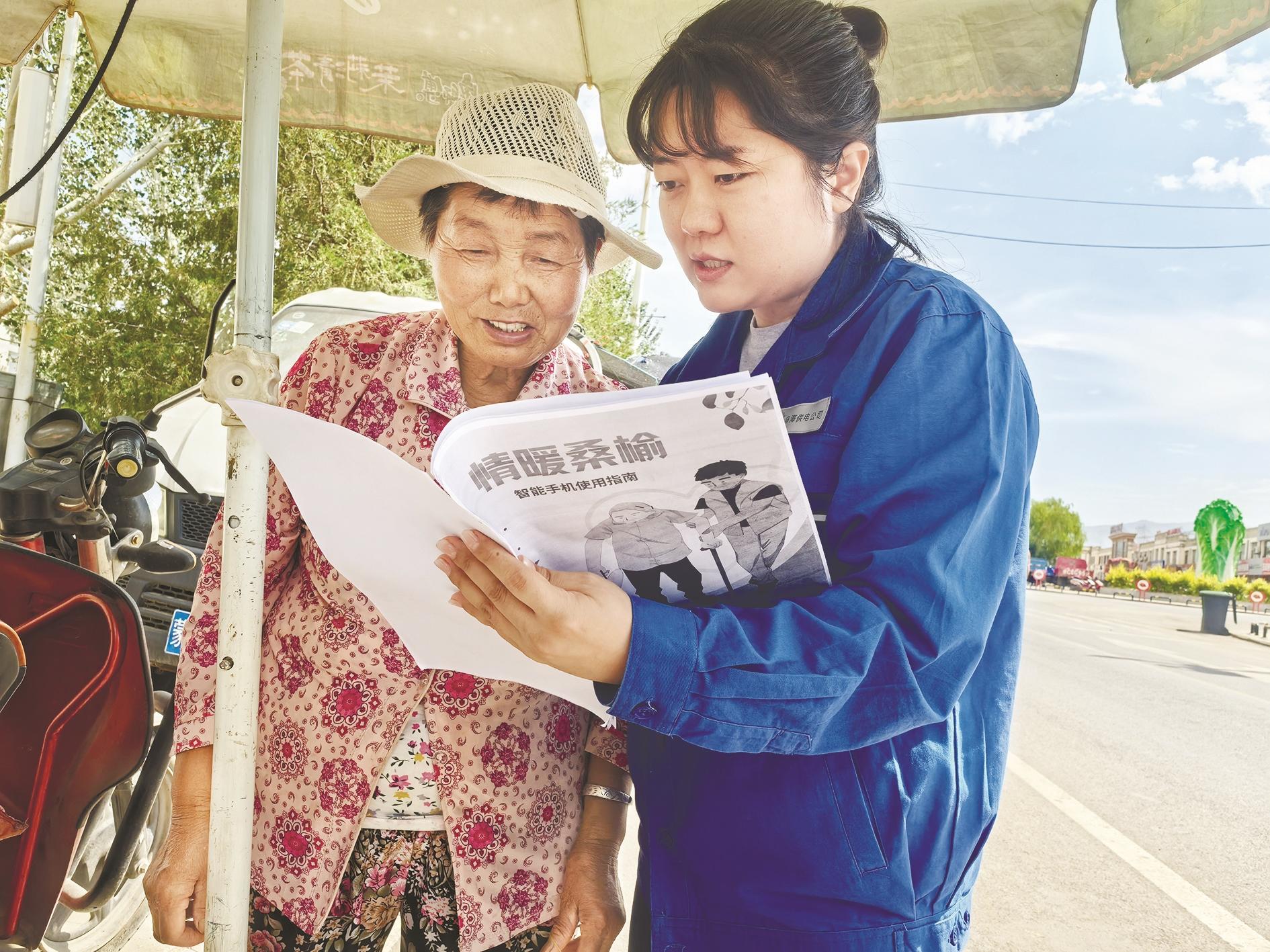 8月22日,乌海千里山供电公司志愿者在海勃湾区千里山镇团结新村广场开展了“情暖桑榆、智汇助老”志愿服务,向老年人讲解安全用电知识,引导他们养成安全用电、科学用电的良好习惯。 (张沥文 摄)
