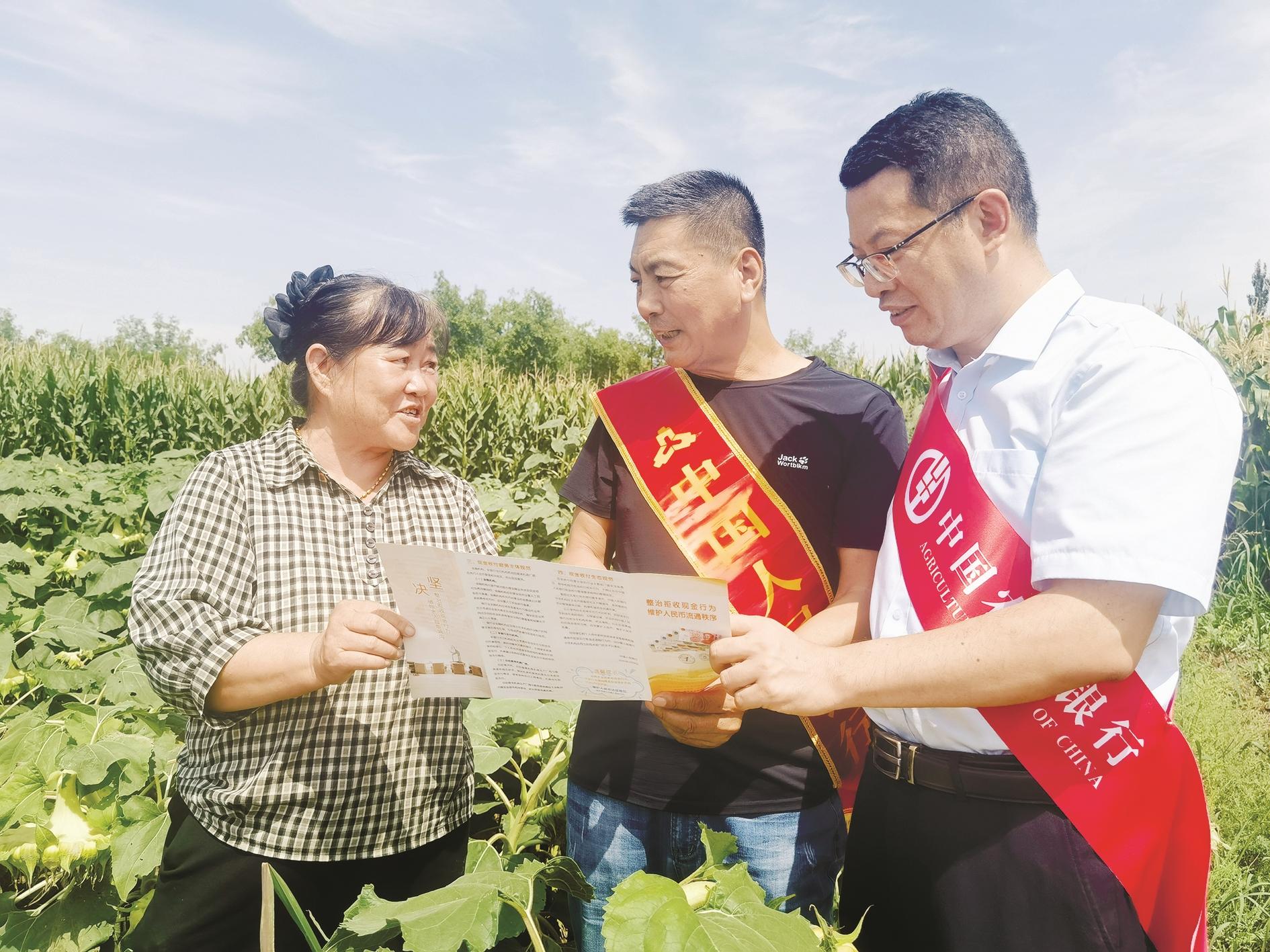 为增强农区居民维护人民币、防范假币意识,提高识别假币的能力,近日,人行乌海市分行联合农行乌海分行在海南区巴音陶亥镇开展反假币集中宣传活动。 (陈洋 摄)