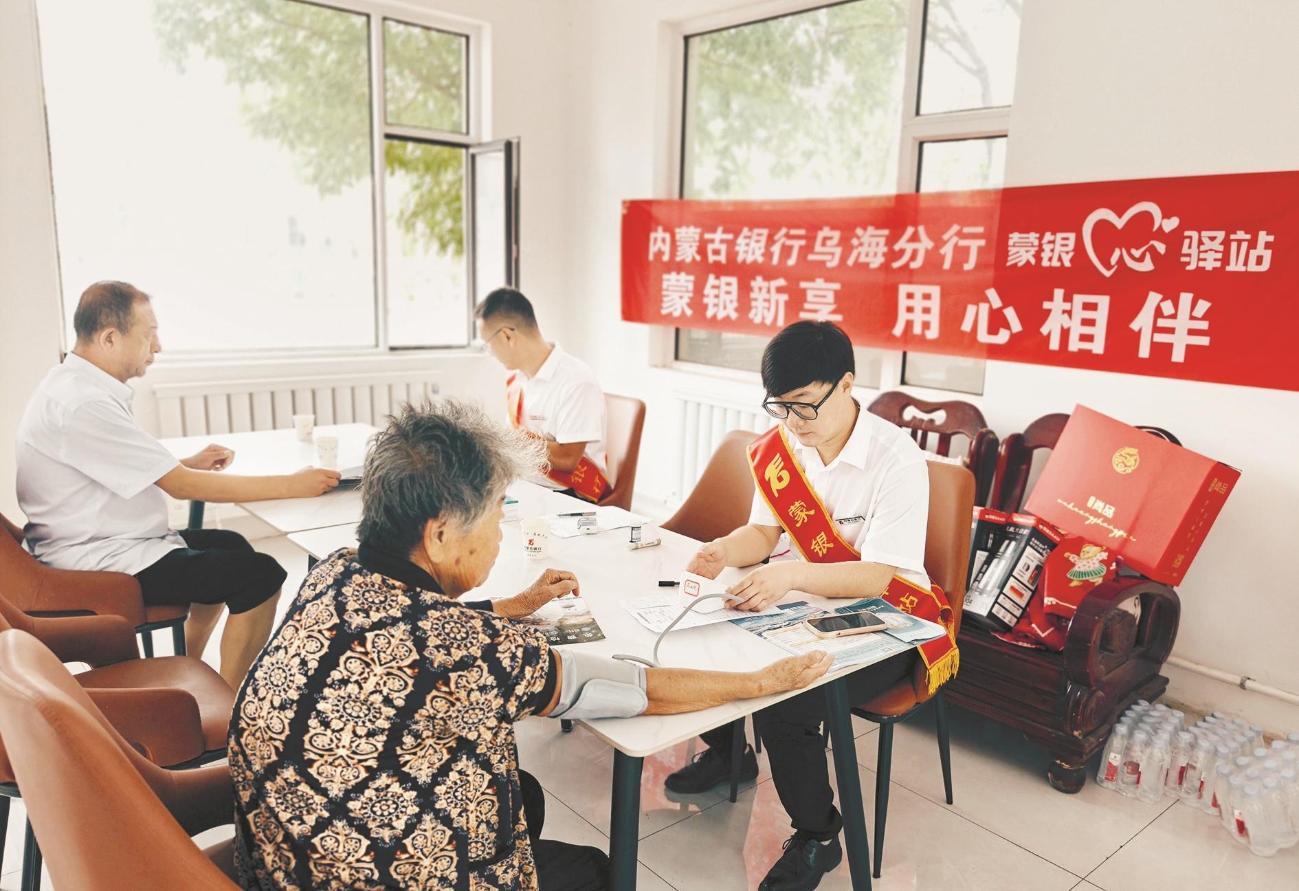近日,内蒙古银行乌海分行携手海勃湾区凤凰岭街道新城社区开展关爱老年人爱心义诊活动。 (陈洋 摄)