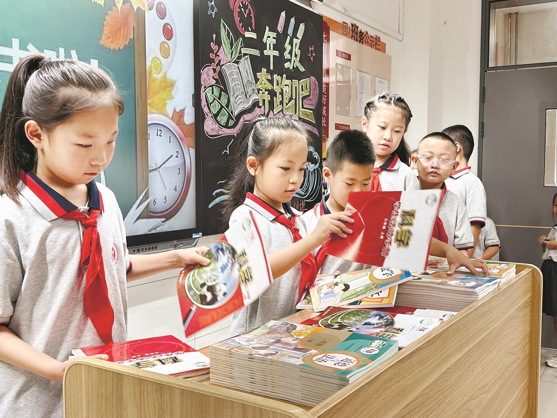 新学期新气象,乌达区各中小学迎来开学季。图为学生领新书。 (陈洋 摄)