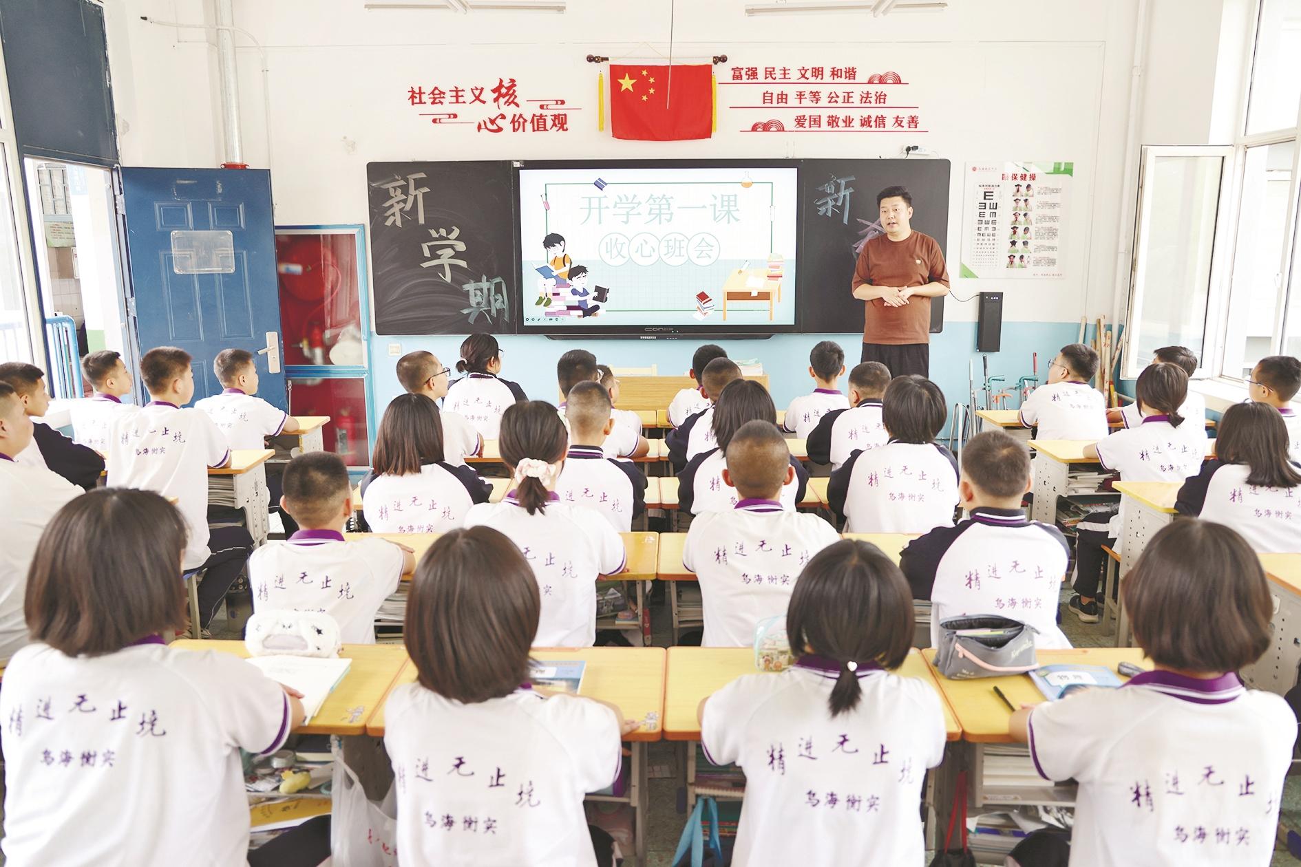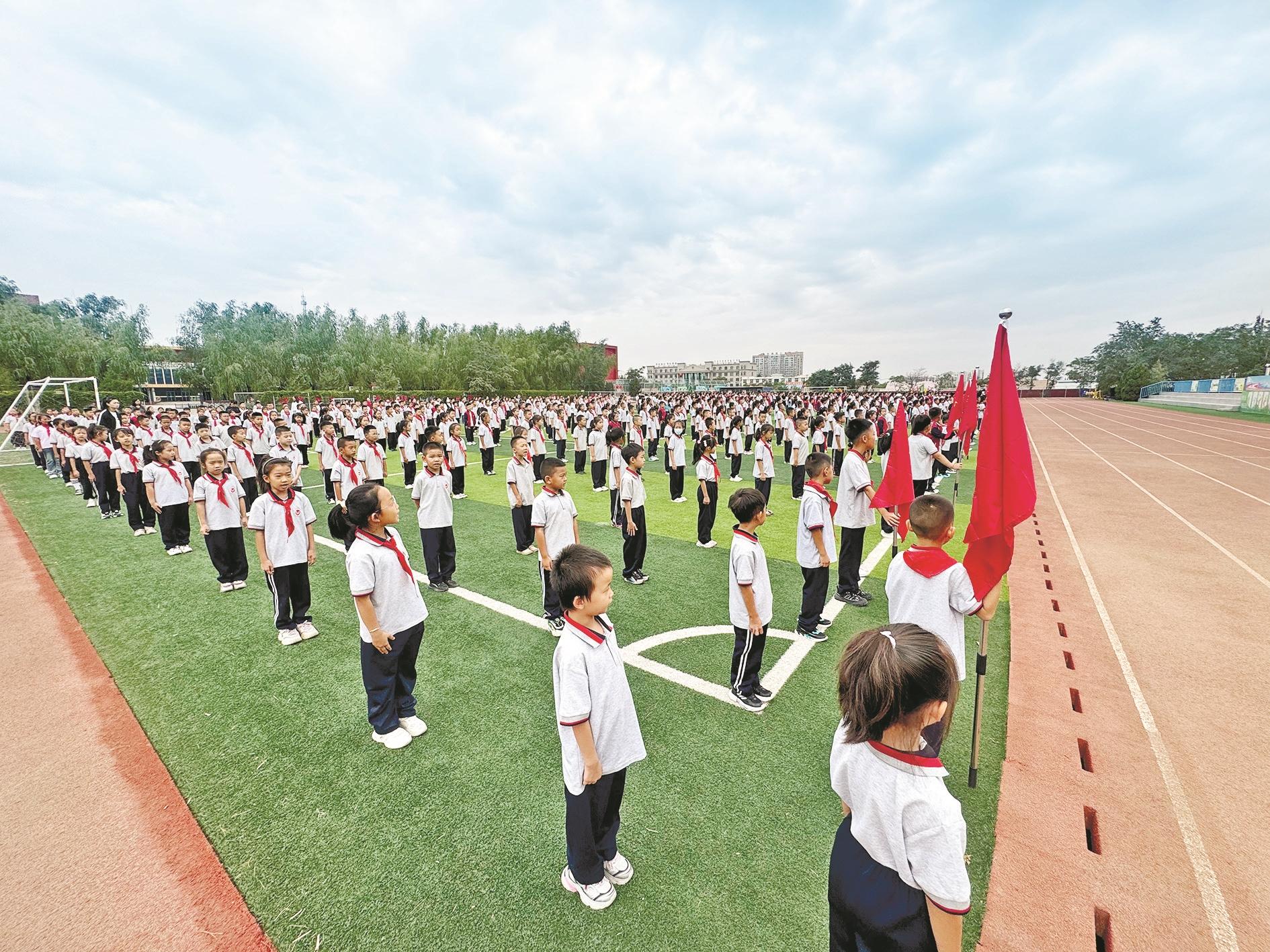 图1:乌达区胜利街小学举行新学期升旗仪式。 (赵政宇 摄)