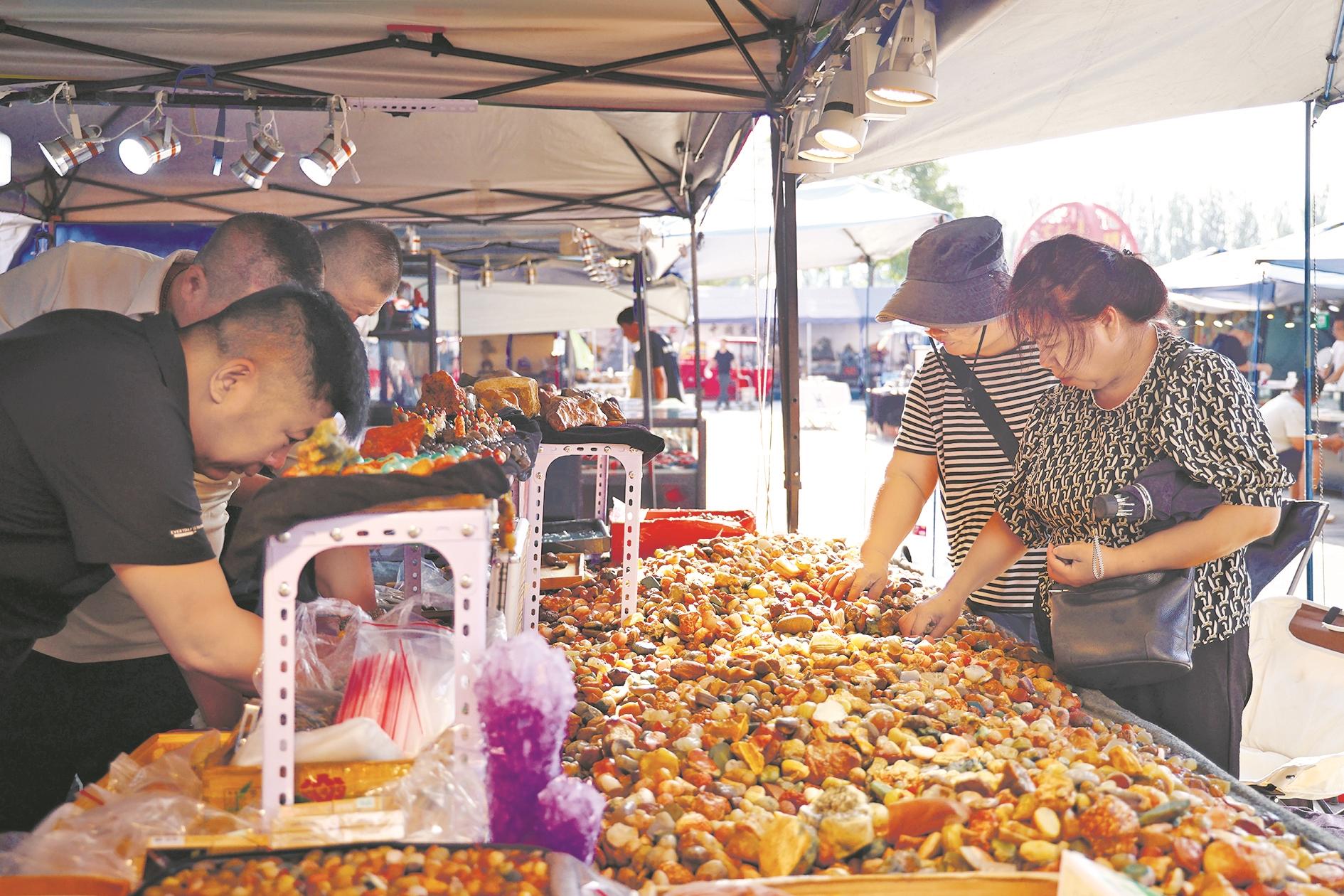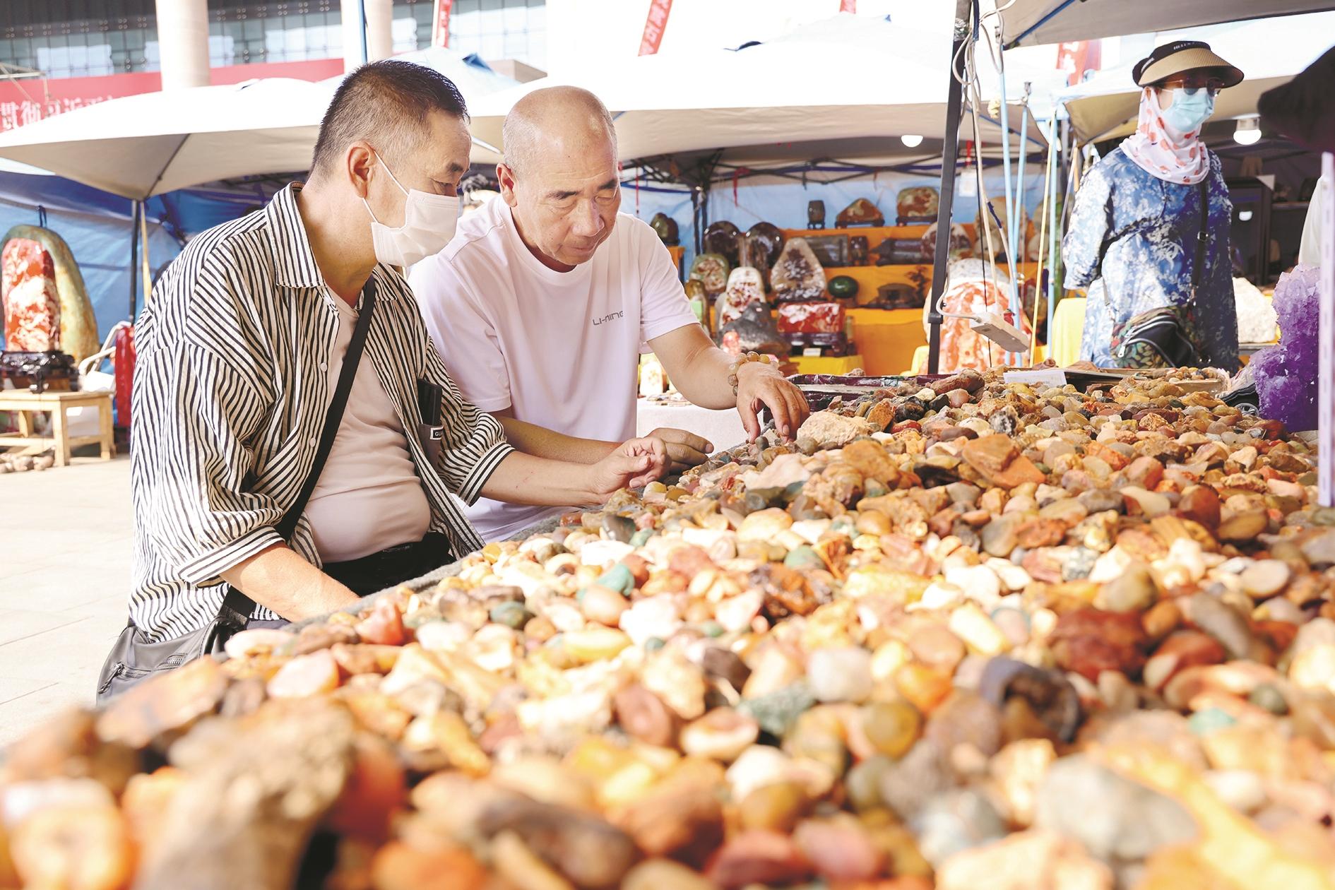 市民在外展C区选购奇石。(高瑞鹏 摄)