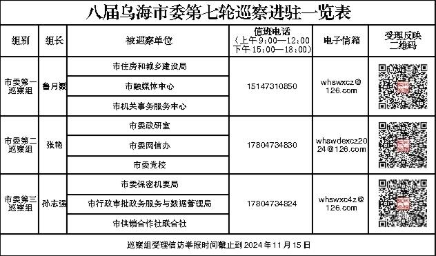 据悉,市委巡察组现场巡察时间为60天左右,受理信访时间截止到2024年11月15日。巡察期间将设立值班电话、电子邮箱等,主要受理反映被巡察党组织领导班子及其成员、下一级党组织主要负责人、所属单位(内设机构)主要负责人,以及重要岗位领导干部问题的来信来电来访,重点是关于违反政治纪律、组织纪律、廉洁纪律、群众纪律、工作纪律、生活纪律等方面的举报和反映。其他不属于巡察受理范围的信访问题,将按规定交有关方面认真处理。