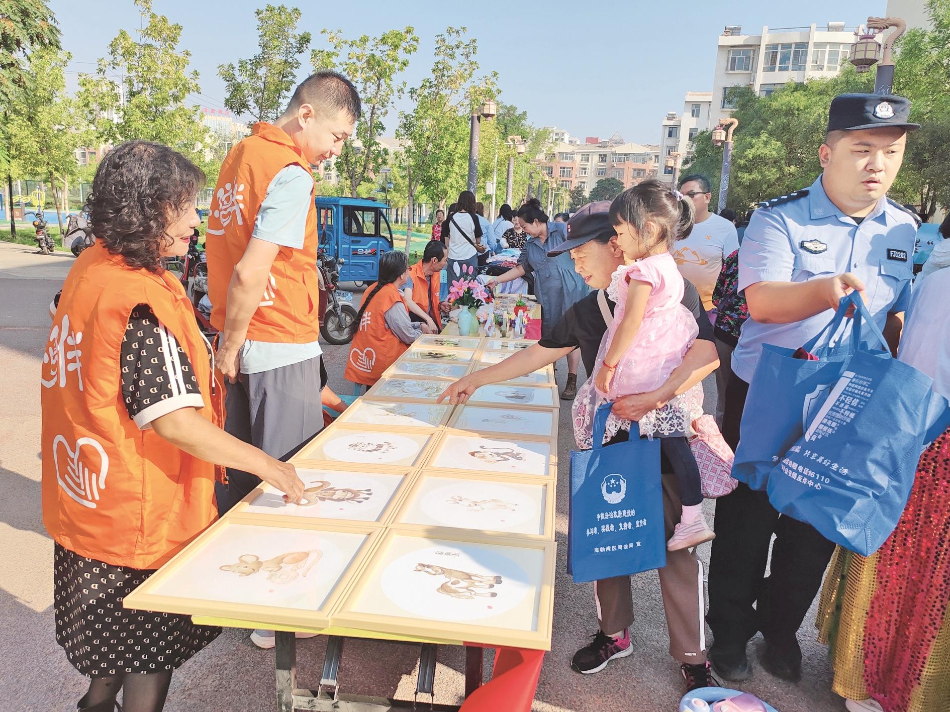 近日,海勃湾区凤凰岭街道墨香梨园社区和长青社区联合举办“石榴花开映北疆 强国复兴跟党走”公益集市进院落活动,通过精彩的文艺表演、就业创业指导、惠民公益服务等,实现居民需求与服务供给无缝衔接,引导各族群众走出家门,共同享受有温度的社区生活。 (张楚研 摄)