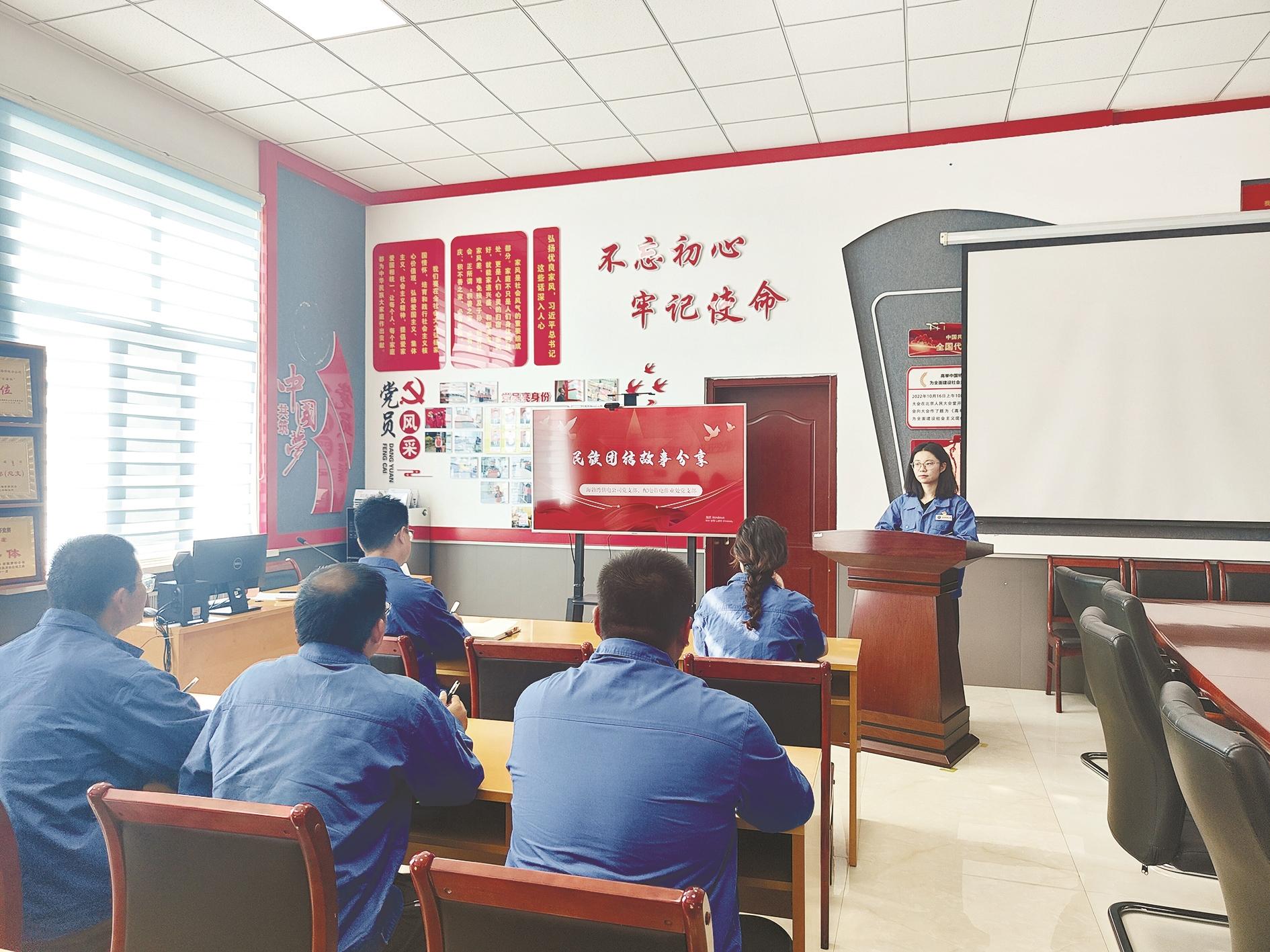 9月是内蒙古自治区第41个民族团结进步活动月。9月6日,内蒙古电力集团乌海海勃湾供电公司党支部联合配电带电作业处开展民族团结主题宣讲活动,通过宣讲、职工分享等,传好民族团结音、共筑民族团结心。 (安琦 刘佳敏 摄)