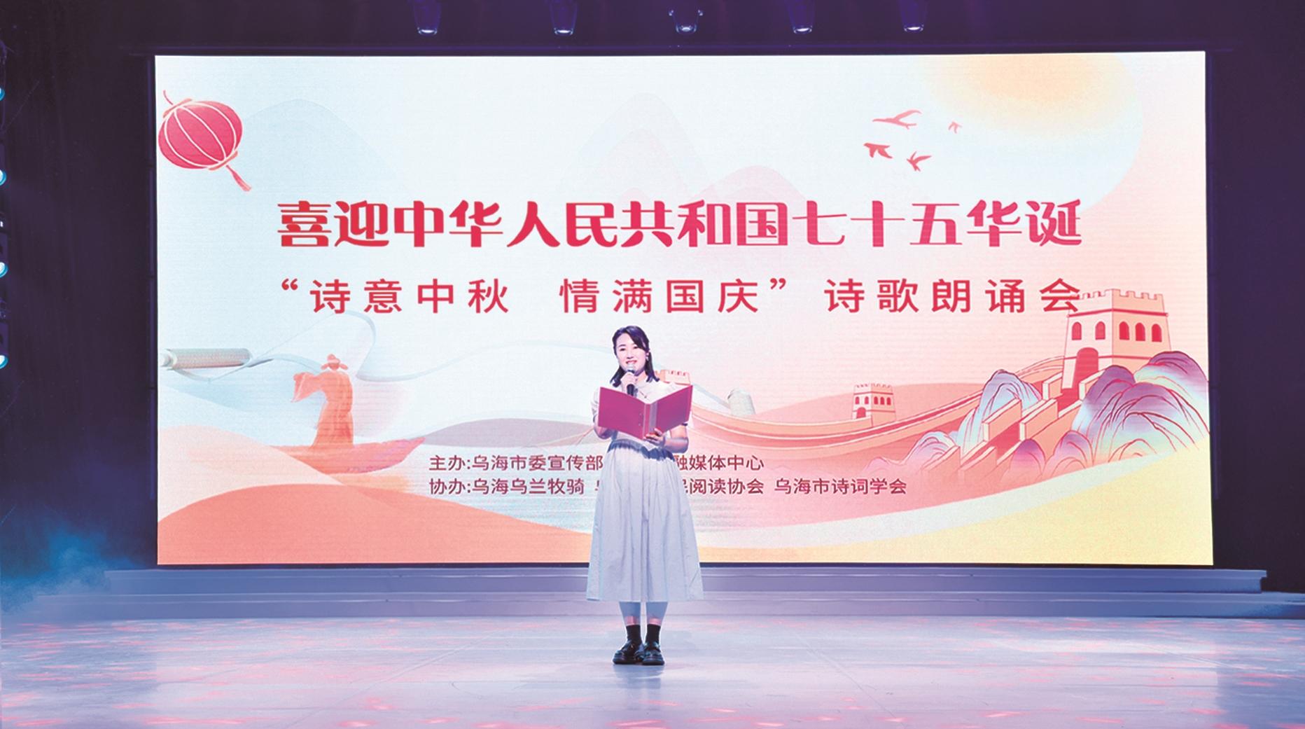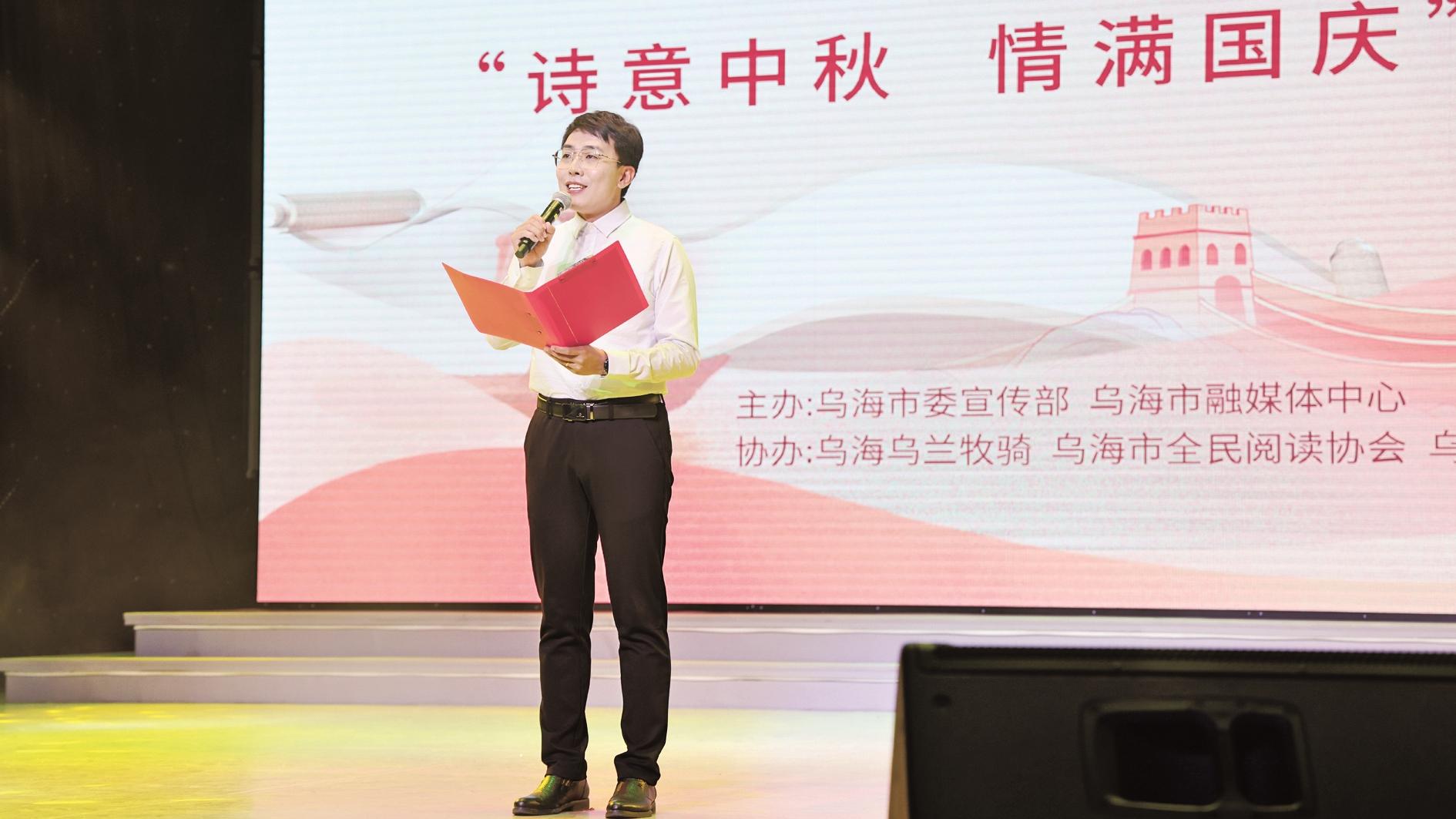 9月11日,一场精彩的中秋诗歌朗诵会在乌海市融媒体中心演播厅举行。本次朗诵会以“诗意中秋 情满国庆”为主题,由乌海市委宣传部、乌海市融媒体中心主办,乌海乌兰牧骑、乌海市全民阅读协会、乌海市诗词学会协办。朗诵者们用饱含深情的诗歌赞颂祖国,赞美家乡,托明月寄相思,用声音送祝福,活动现场亮点纷呈。