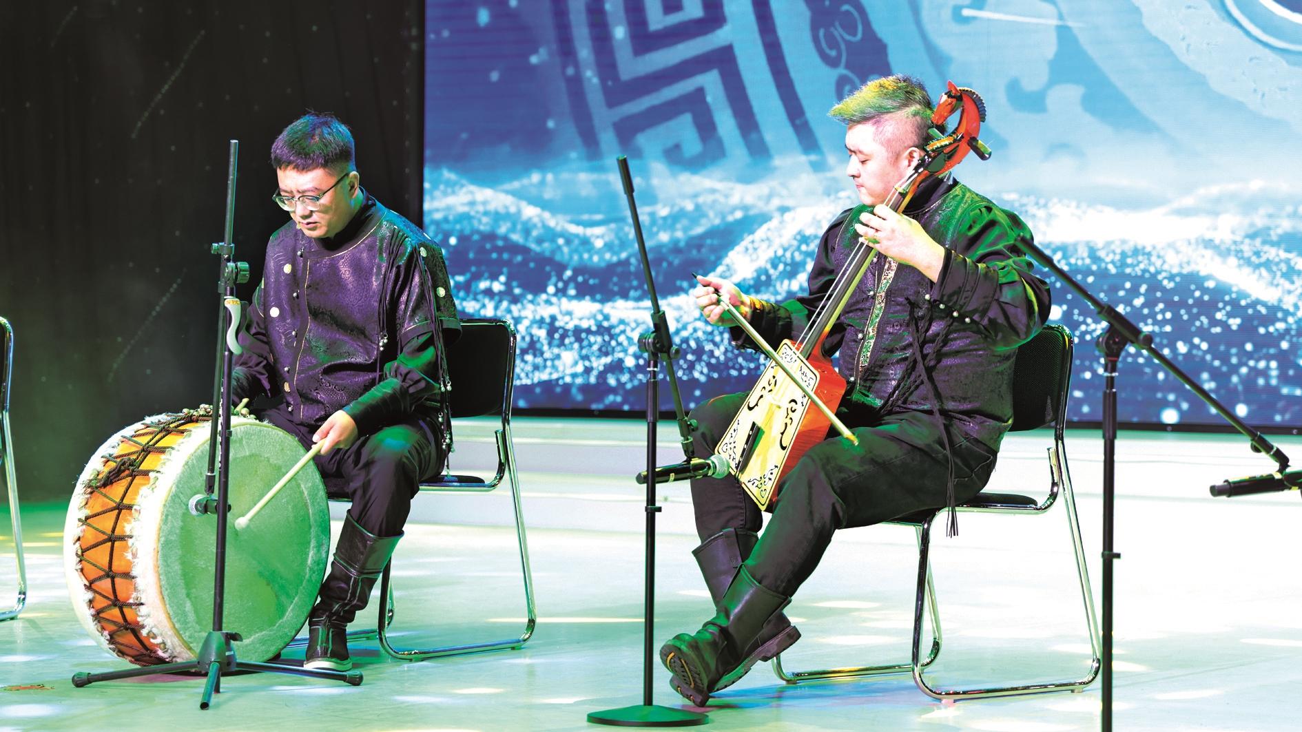 活动在乌海乌兰牧骑精彩的器乐演奏中拉开帷幕。合奏的马头琴乐声壮阔雄浑,意境旷达悠远,一秒就将观众拉入现场由灯光、舞美营造出的世界。