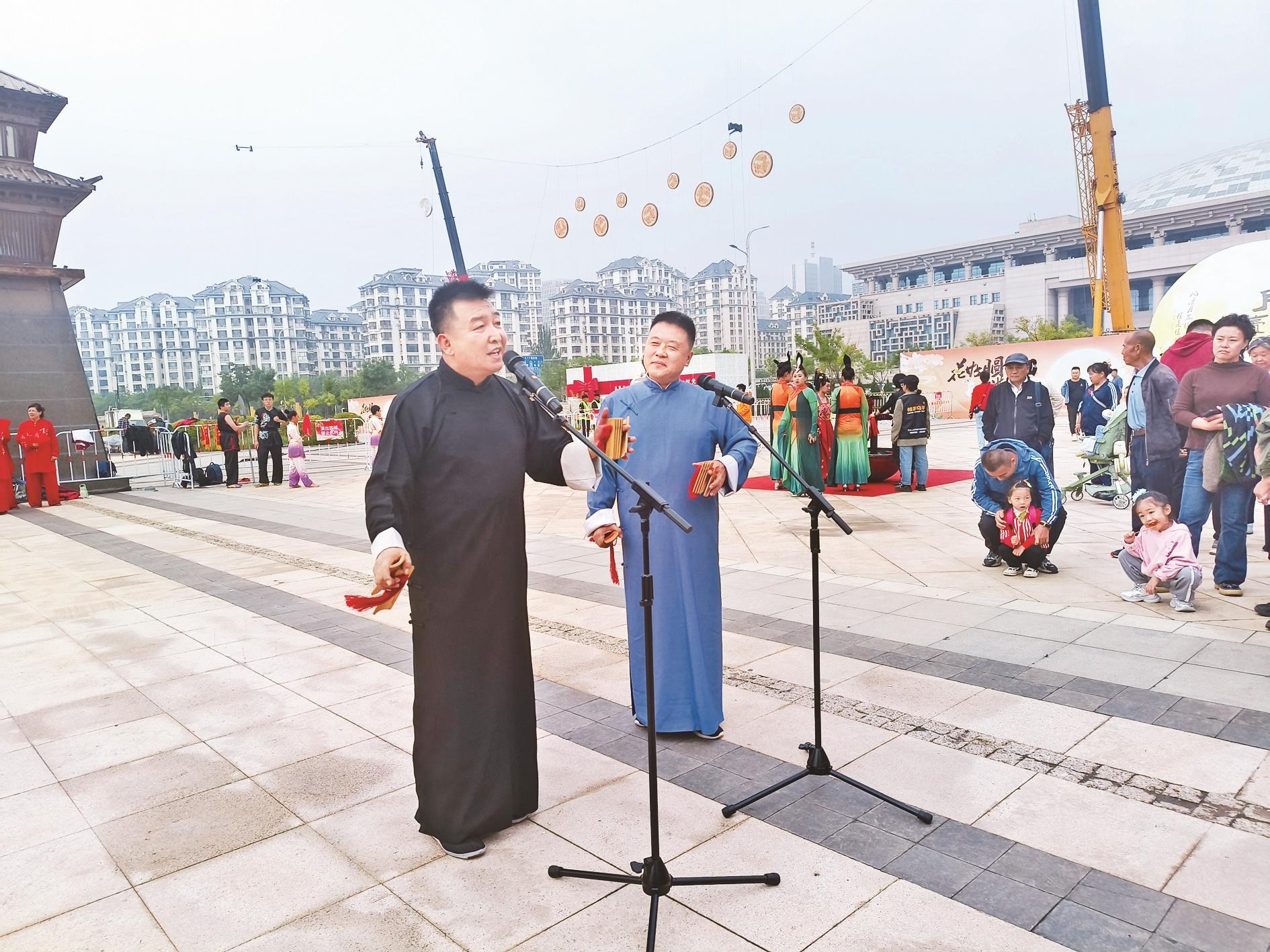 活动现场,曲艺表演吸引了不少观众驻足观看。(郭威 摄)