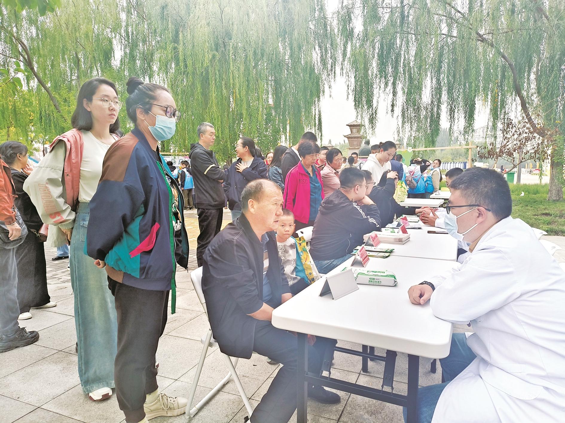 与此同时,在不远处的“逛夜市 看中医”中医药(蒙医药)集市活动也在热闹举行。活动现场设有中医义诊区、中医适宜技术体验区等多个区域。中医义诊区里,医生耐心解答人们的各种健康问题;中医适宜技术体验区也是人气满满,工作人员向市民介绍艾灸、推拿等传统中医疗法,让人们感受中医的独特魅力。此次活动将传统中医药与集市相结合,既为大家提供了健康服务,又很好地宣传推广了中医药文化。
