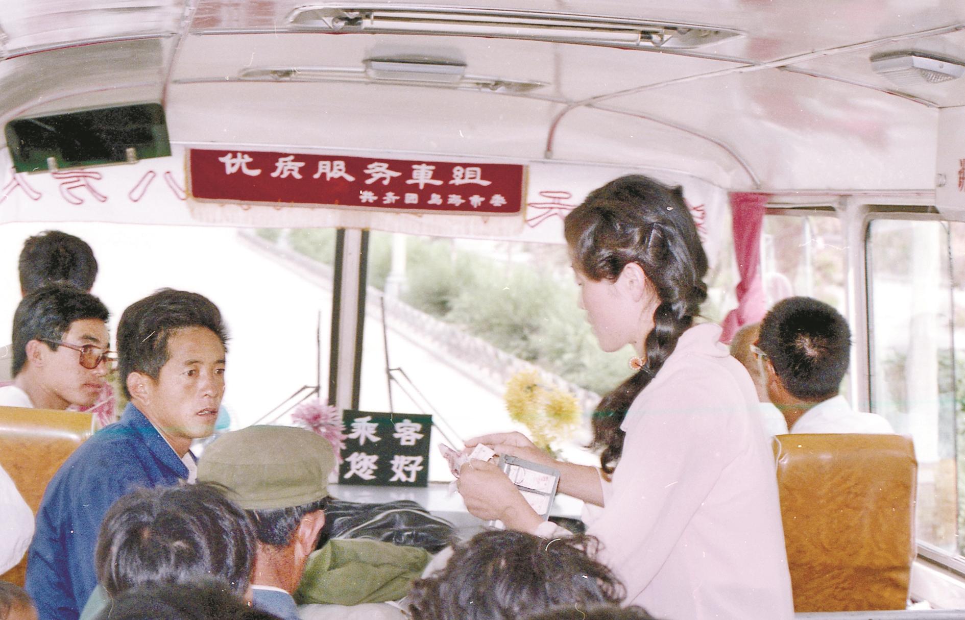 公共汽车人工售票。(市城市规划建设档案馆提供)