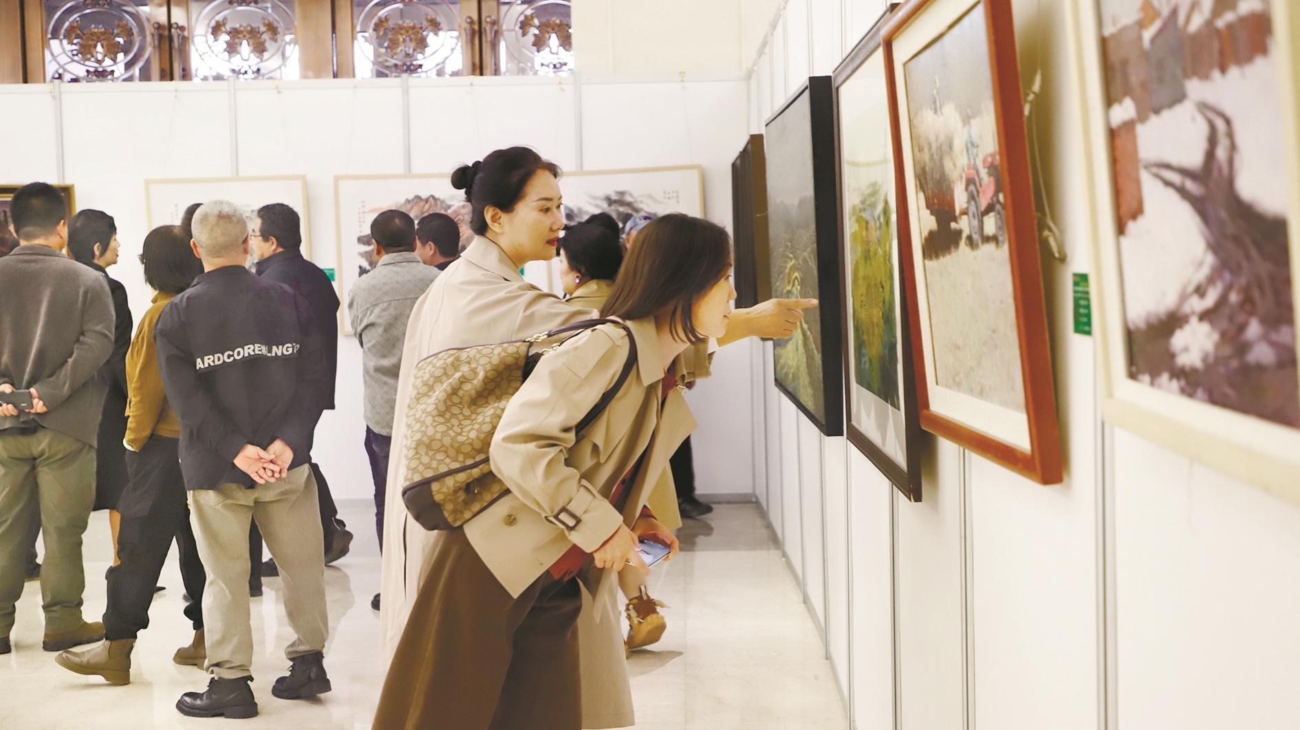 9月14日,“放歌北疆 书写百姓”内蒙古风景画学会优秀美术作品展乌海巡展暨第九届名家写生乌海展在当代中国书法艺术馆开展。