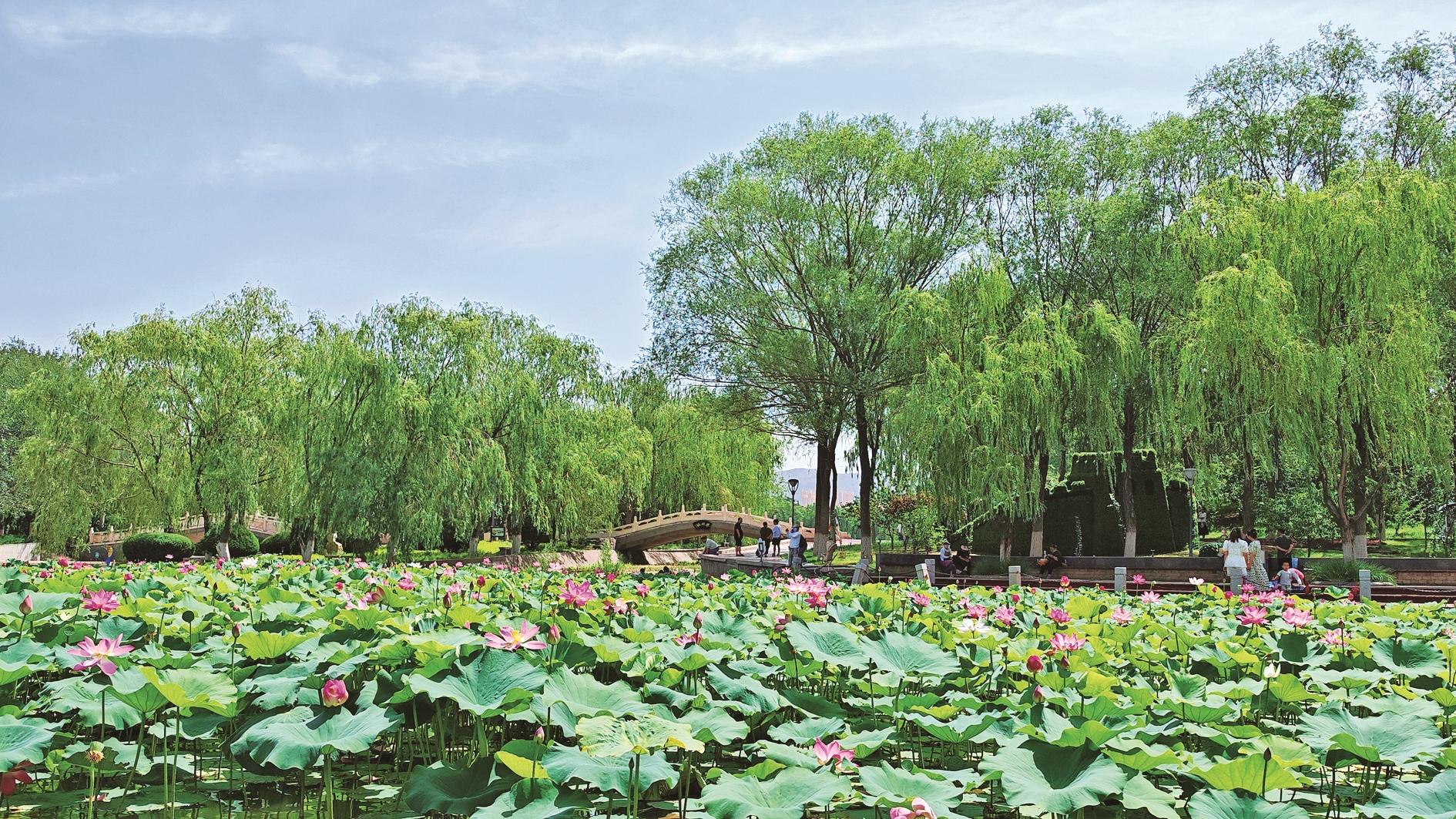 在小记者摄影作品中,彩虹桥宛如一道绚丽的彩虹横跨在甘德尔河上,与蓝天白云相映成趣;公园里,五彩斑斓的花朵竞相绽放,散发出阵阵芬芳;茂密的树叶在微风中轻轻摇曳,为炎热的夏天带来了一丝清凉;傍晚时分,夕阳的余晖洒在乌海湖的水面上,倒映着天边的晚霞,美不胜收。