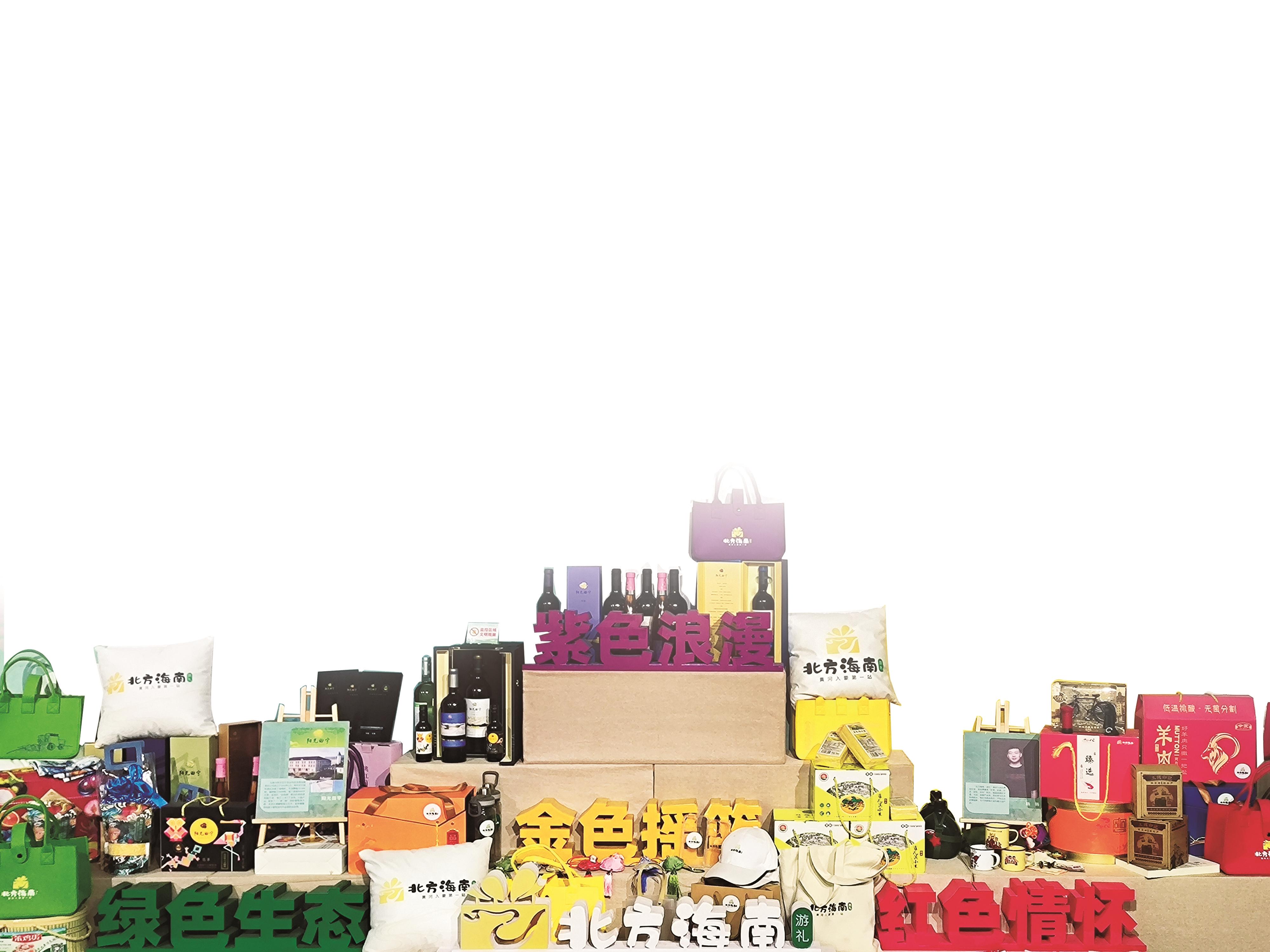 海南区文旅部门推出了“北方海南·游礼”系列文创产品。该系列文创产品包含红色情怀、金色摇篮、紫色浪漫、绿色生态4个子系列产品。红色情怀系列作品彰显红色文化,以三线盲盒、军工文化等产品为代表,产品灵感来源于小三线建设那段激情燃烧的岁月;金色摇篮系列产品宣传黄河文化,以黄河彩绘、雀儿沟小米为代表,寓意着丰收,取材于黄河滋养的肥沃土地;紫色浪漫系列产品体现红酒文化,以鲜食葡萄、葡萄酒等产品为主,取材于我市的葡萄产业和葡萄深加工形成的葡萄酒;绿色生态系列产品体现农耕文化,包含福河有机玉米糁、笨鸡蛋等地区无公害产品,宣传推介海南区特产。