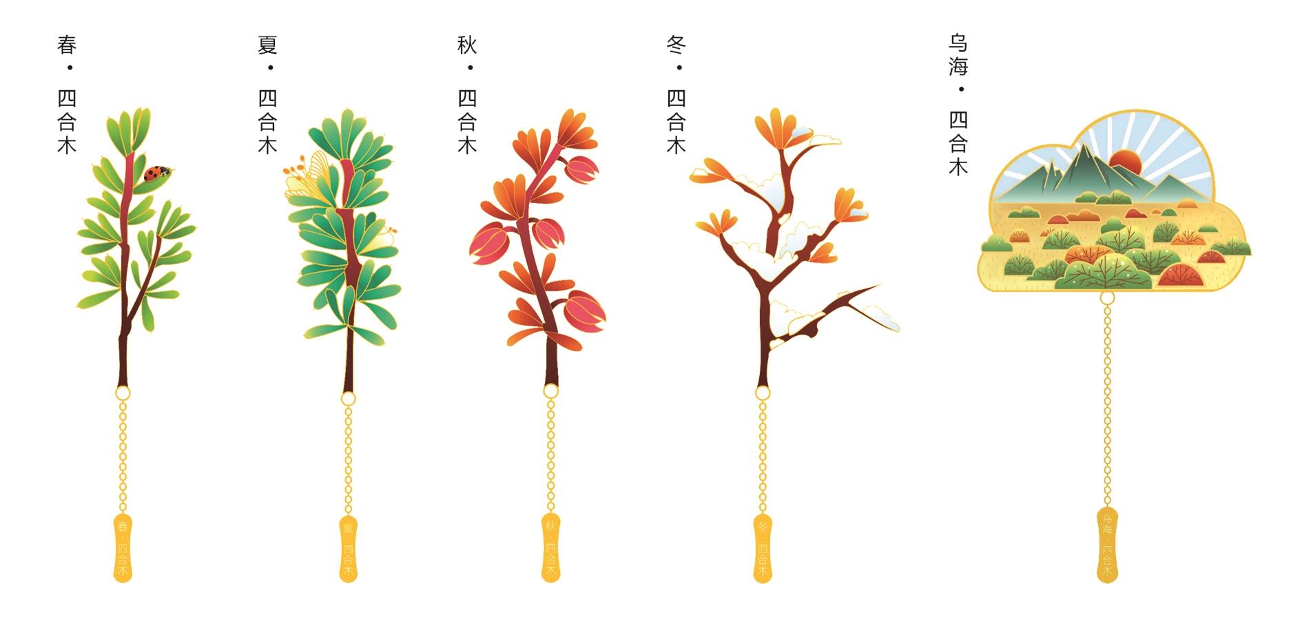 四合木主题书签 四合木是最具代表性的古老残遗濒危珍稀植物,被誉为植物中的“活化石”和“大熊猫”。它起源于1.4亿年前的古地中海植物区系,且分布范围极其狭小。在位于乌海市的西鄂尔多斯国家级自然保护区,四合木作为建群种和优势种形成群落,堪称生命奇迹。四合木主题书签选择我市最具代表性的植物四合木,通过我市摄影家拍摄的四合木四季不同颜色的照片,书签设计人员创作出四合木主题书签,其中1张书签将四季四合木组合在一起,书签上甘德尔山、红日和四合木交相辉映,极具美感。 规格:每个书签高约10厘米。