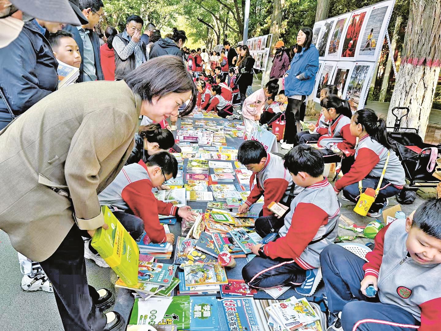 9月21日,海勃湾区多所学校积极组织学生参与图书漂流集市,引导激励学生爱读书、读好书、善读书。 (陈洋 摄)