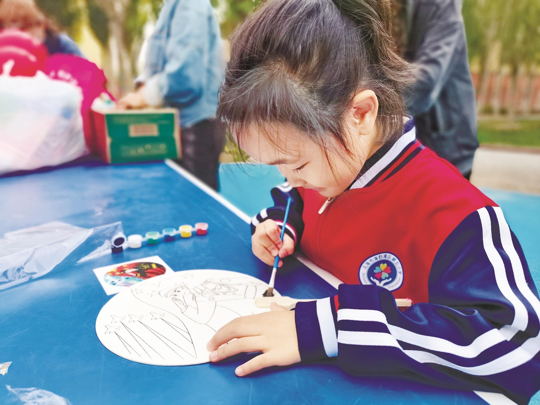 近日,海勃湾区滨河街道白楼社区新时代文明实践站开展了“童言童语迎国庆 共绘中国梦”手工制作活动。活动中,在工作人员的指导下,辖区少年儿童利用已有的材料,一起制作团扇和书包,并在团扇和书包上进行绘画、贴画,表达对伟大祖国的热爱之情。