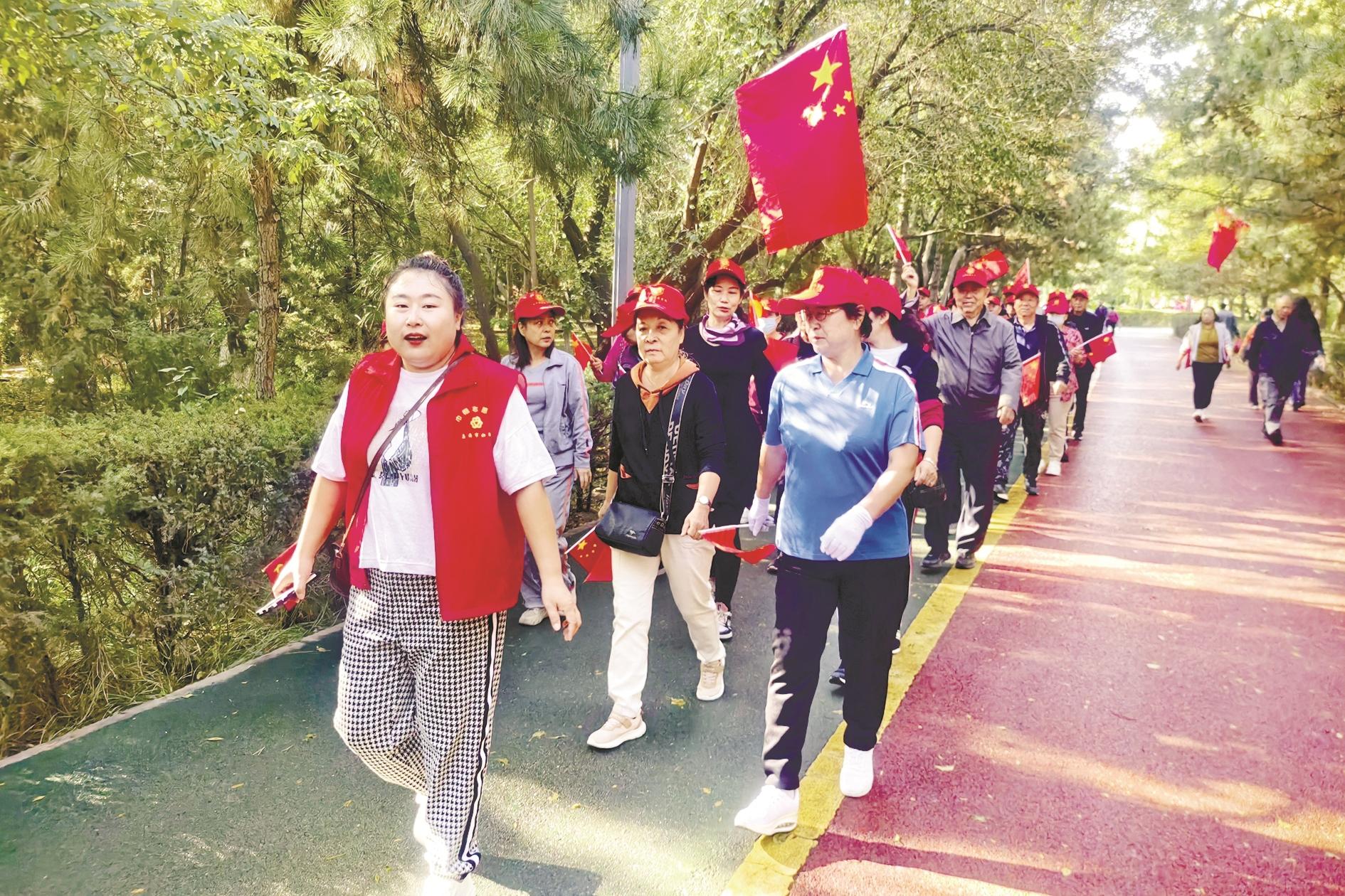 近日,海勃湾区新华街道新海社区党委组织辖区党员群众在市人民公园开展了“喜迎国庆 健康同行”健步走活动,充分展现辖区党员群众健康乐观、积极向上的精神面貌,进一步增强大家的凝聚力和向心力。 (黄建飞 摄)