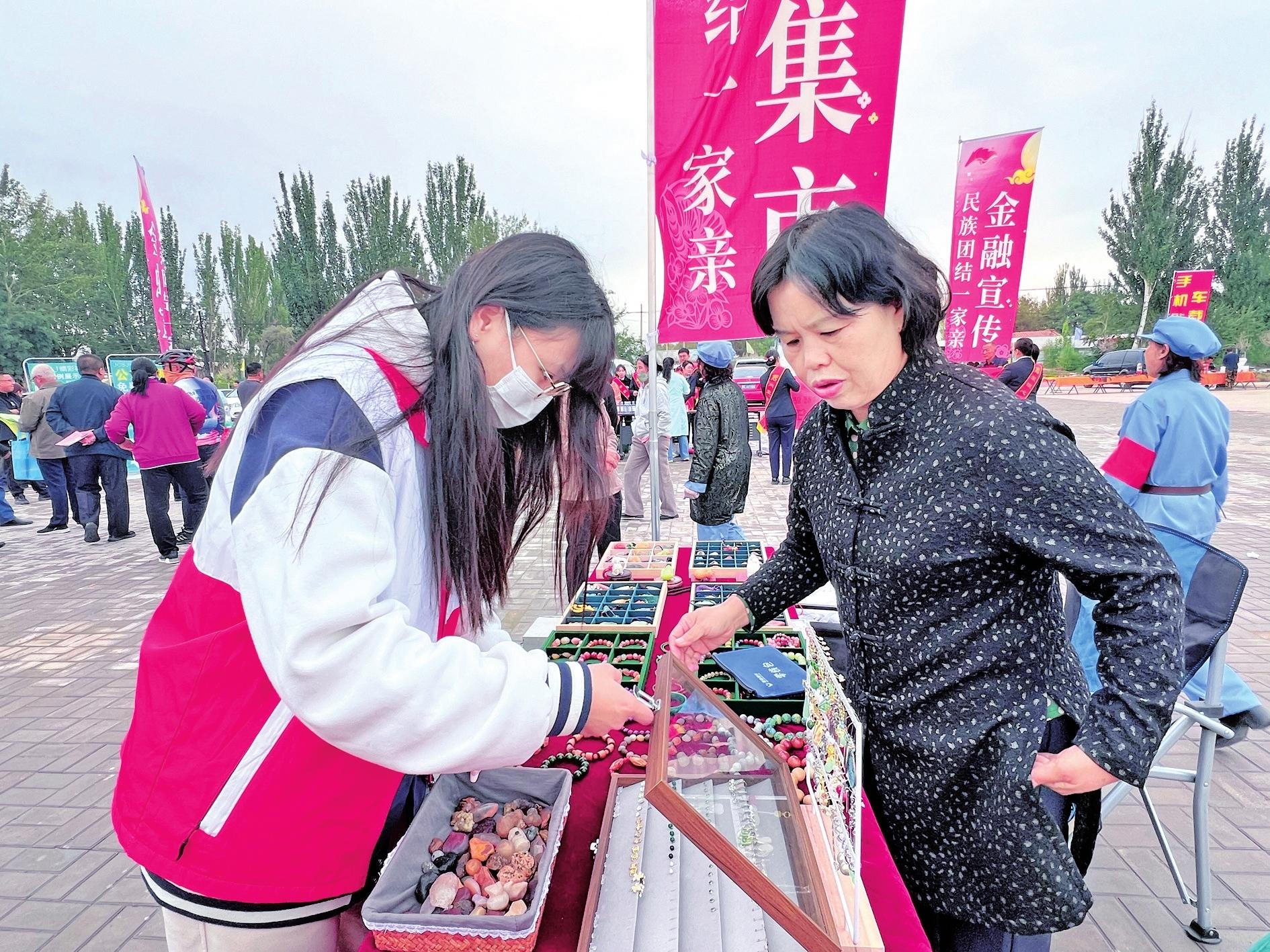 近日,海勃湾区滨河街道党工委、滨河街道中河源社区党委联合举办了“民族团结一家亲 共筑和谐邻里情”睦邻集市活动。活动中,海勃湾区滨河街道党工委联合医疗机构、金融机构、非遗传承人、文艺志愿者等“睦邻伙伴”开展了民族团结进步宣讲、“睦邻百家宴”、文艺汇演、非遗展示、爱心义诊、反诈宣传等系列活动,引导辖区各族群众在交往、交流、交融中进一步铸牢中华民族共同体意识,让“陌邻”变“睦邻”,让“百家”成“一家”。图为群众在集市上挑选心仪的玉石手串。