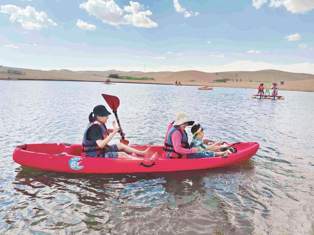 海勃湾区文化旅游体育局探索新思路、新举措,持续拓展“旅游+”,以沙水相连、与城相邻的地域特色为基础,以旅游发展和乡村振兴为连接点,将葡园绿道、云享小镇、金沙湾、乌海湖等景区串珠成链,形成了“周边游”“乡野游”“生态游”“穿沙游”“文化游”“非遗游”等7条特色旅游精品线路,为游客提供了个性化、差异化、品质化的旅游体验。