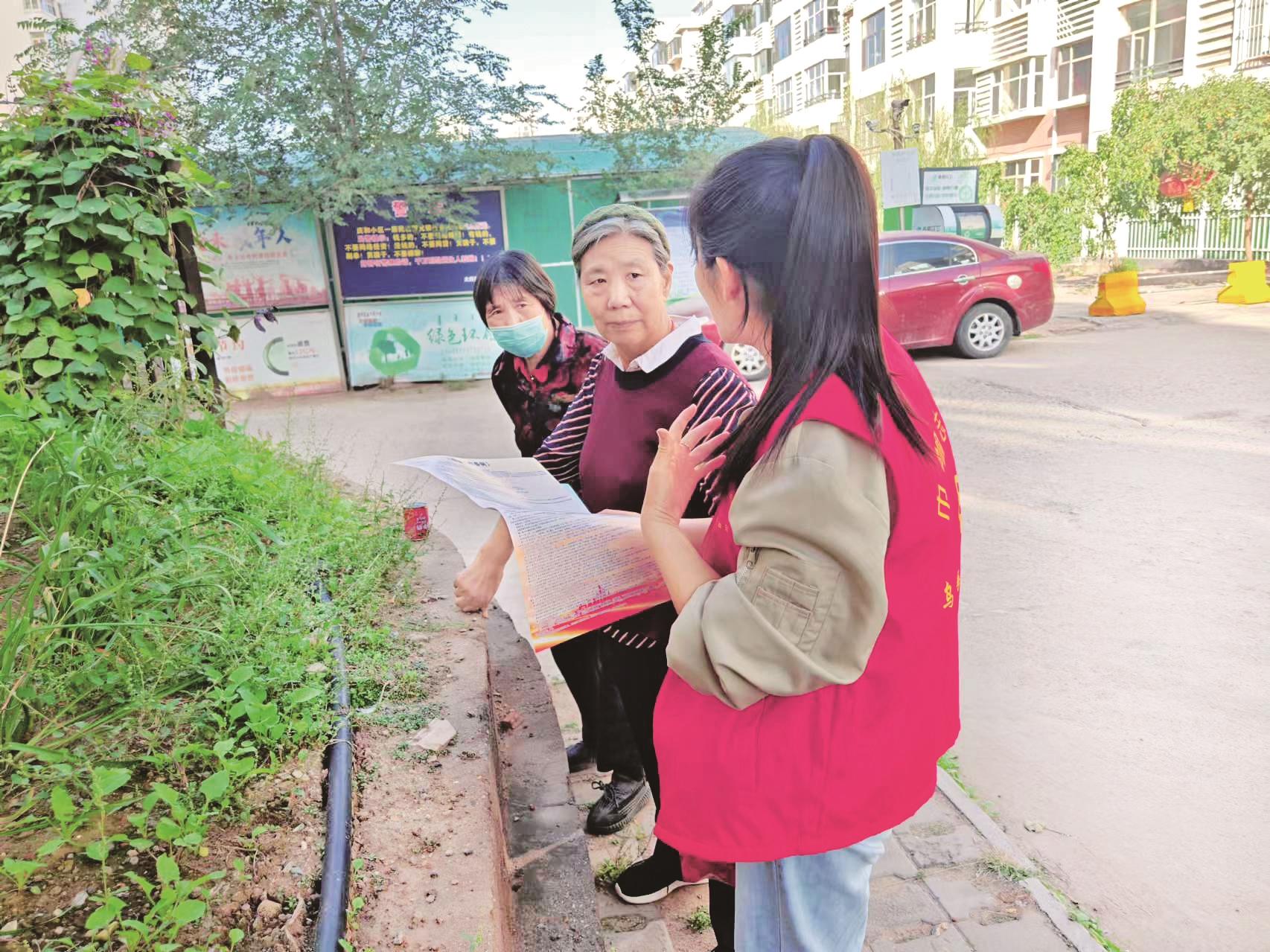 近日,海勃湾区海北街道东环路社区在辖区内开展了以“开启垃圾分类,点亮绿色未来”为主题的生活垃圾分类宣传活动,提高垃圾分类宣传覆盖面,增强居民对垃圾分类知识的了解,引导居民积极参与到垃圾分类的实践中来。(毕晓敏 摄)