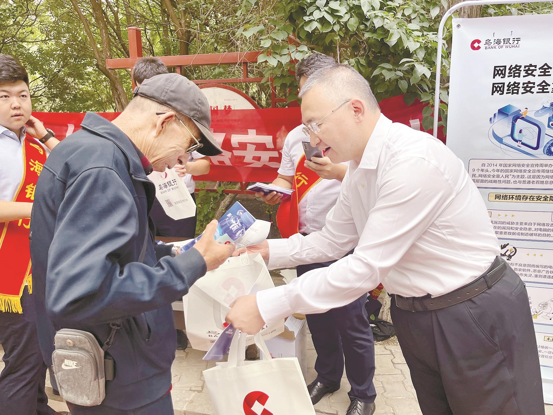 乌海银行工作人员向群众宣传电信网络诈骗、个人信息保护、安全上网等知识,对网络安全的重要性、电信网络诈骗最新手法和防范措施进行了全面深入的讲解,并送上“网络安全宣传周”折页,引导群众及时了解日常生活中可能遇到的各类网络安全危害,从而增强防范意识,提高防范能力。