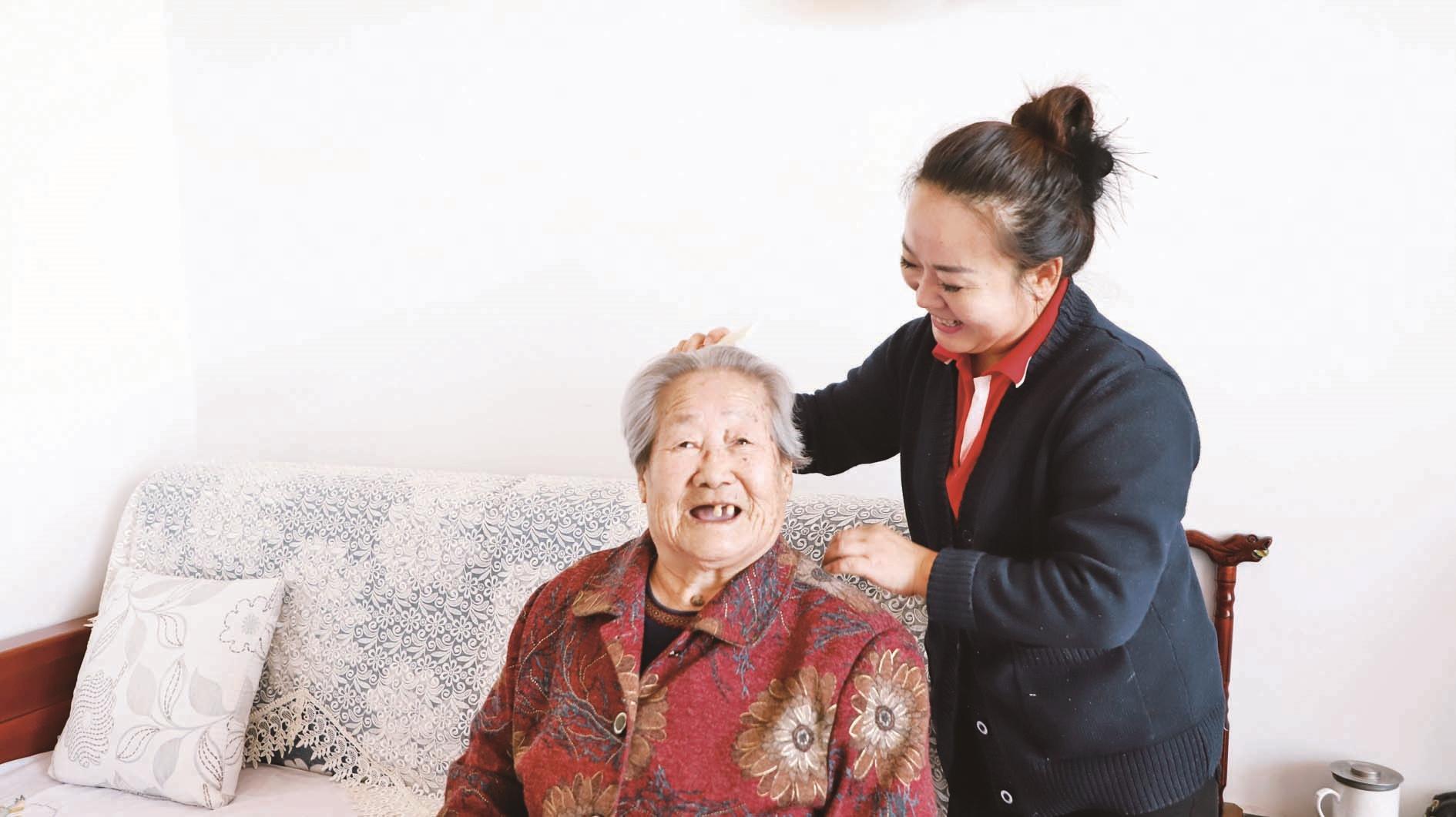 宜和老年公寓护工在重阳节为老人梳洗。(赵政宇 摄)