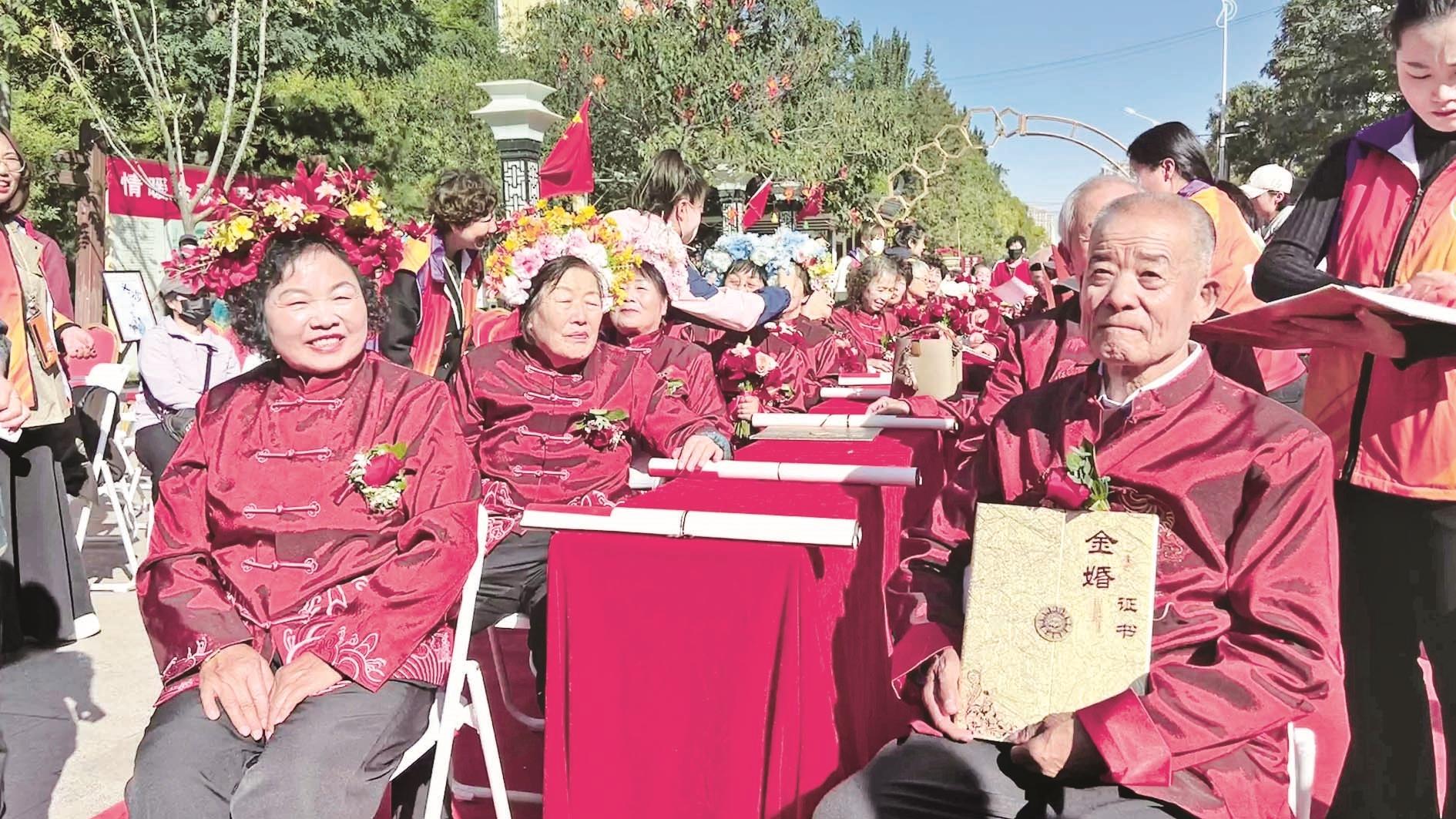 市民政局为金婚老人举办庆典。(张舒怡 摄)