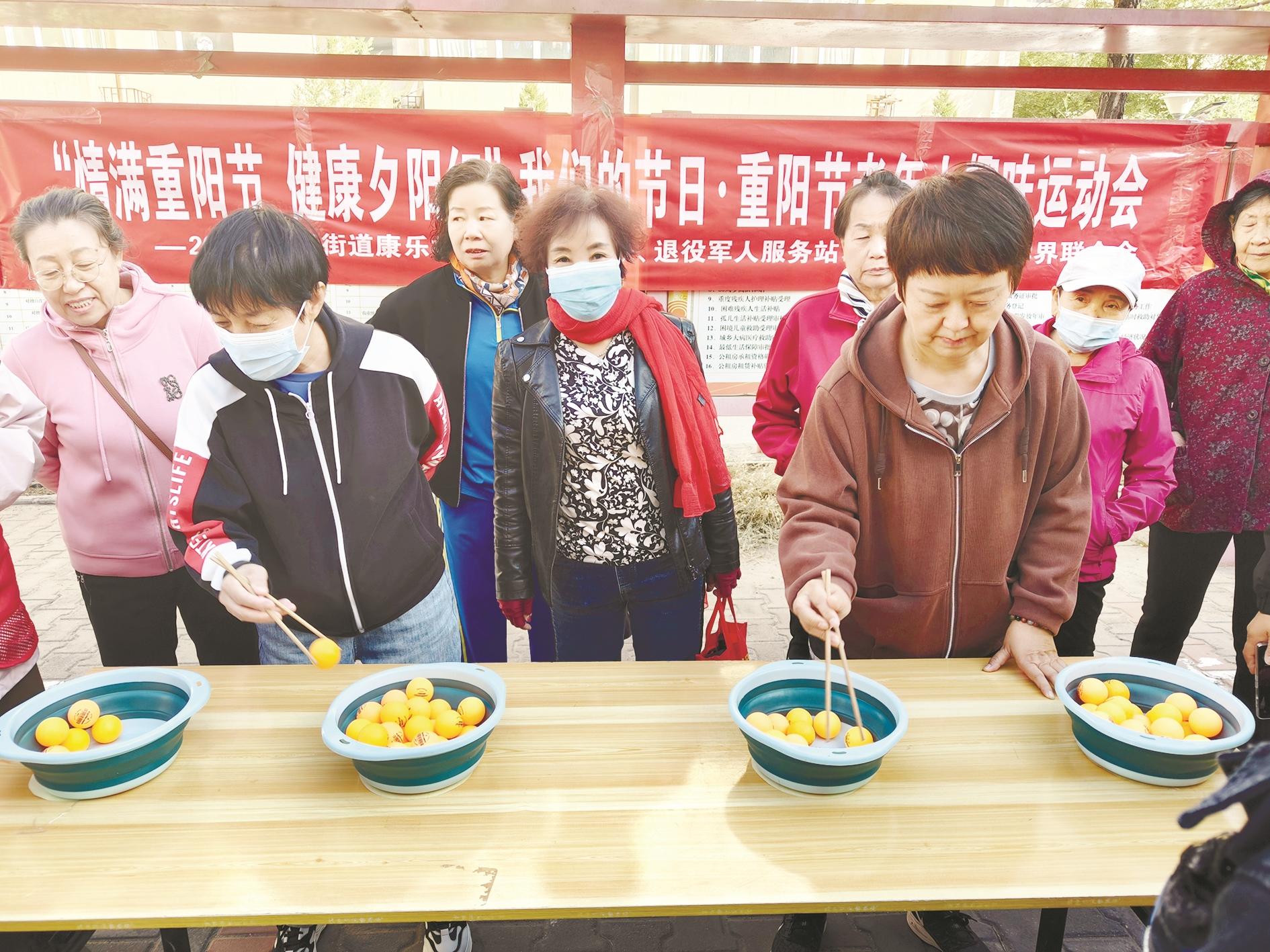 海勃湾区新华街道康乐社区举办老年趣味运动会。(王玥 摄)