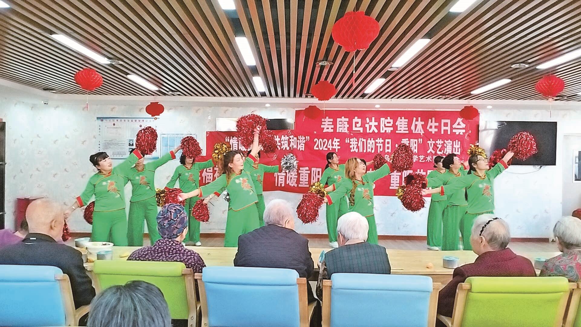 在乌达区寿康颐养养老院,志愿者为老人献上精彩表演和节日祝福。(赵政宇 摄)