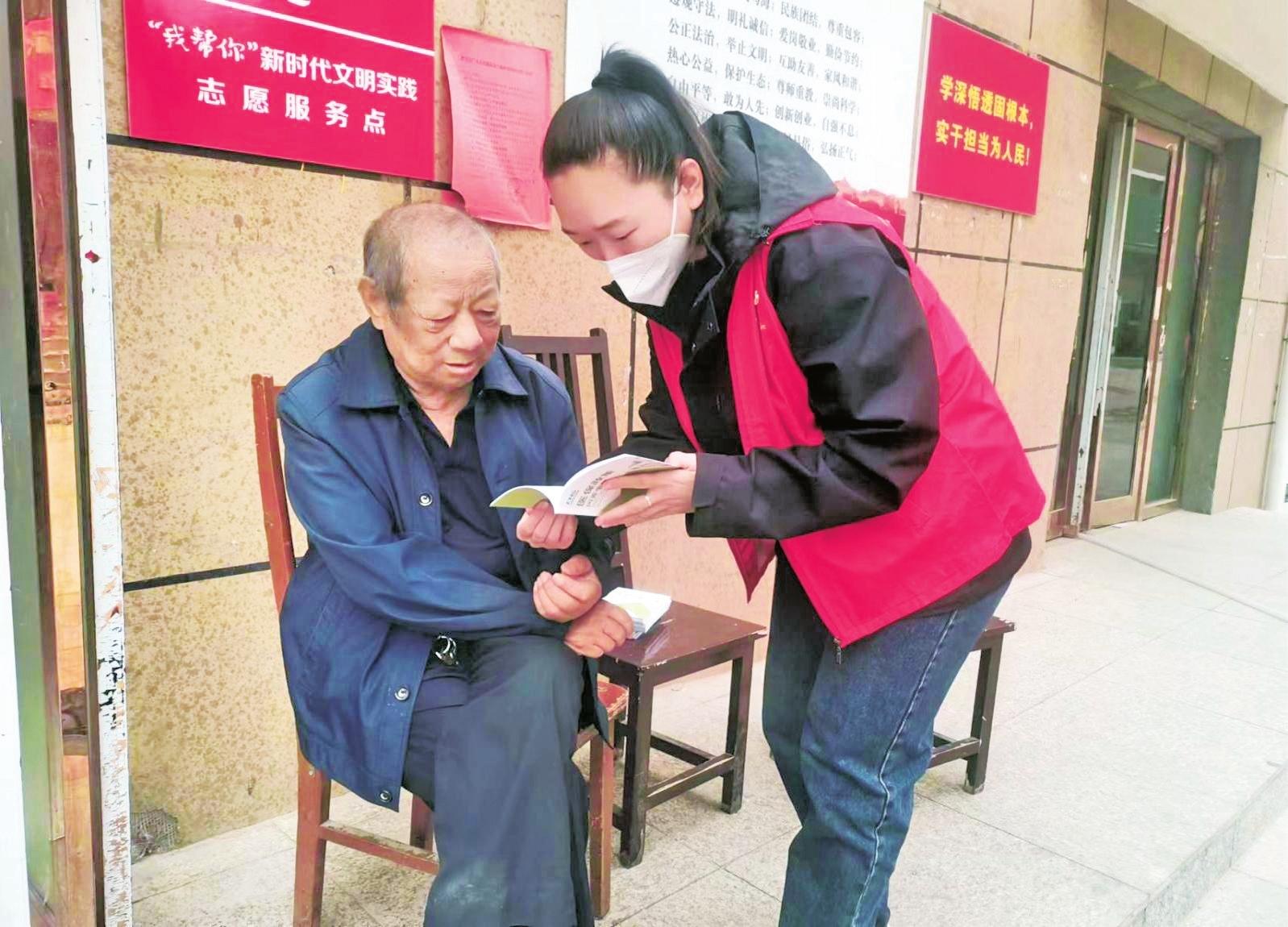 近日,海勃湾区海北街道长青东社区以共同打造韧性的未来为主题,积极开展“国际减灾日”主题宣传活动。志愿宣传队深入小区、广场等人员密集场所,向居民发放宣传册等资料,并为居民们讲解防灾减灾知识。 (毕晓敏 摄)