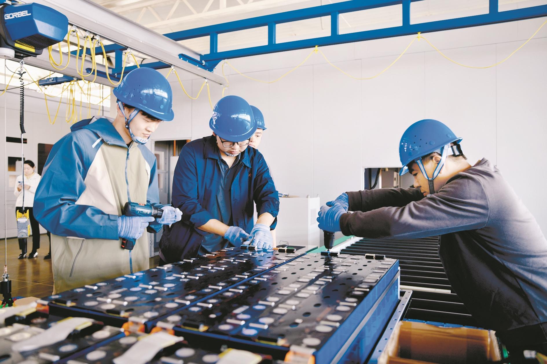 近年来,我市立足资源禀赋和产业基础,推动新兴产业扩能集聚,推动产业链向下游硅片、电池、组件、储能等方向延伸,丰富拓展新能源场景应用,打造经济增长“新引擎”。图为10月16日,乌海国轩金动历新能源股份有限公司技术工人在组装锂电池电芯。