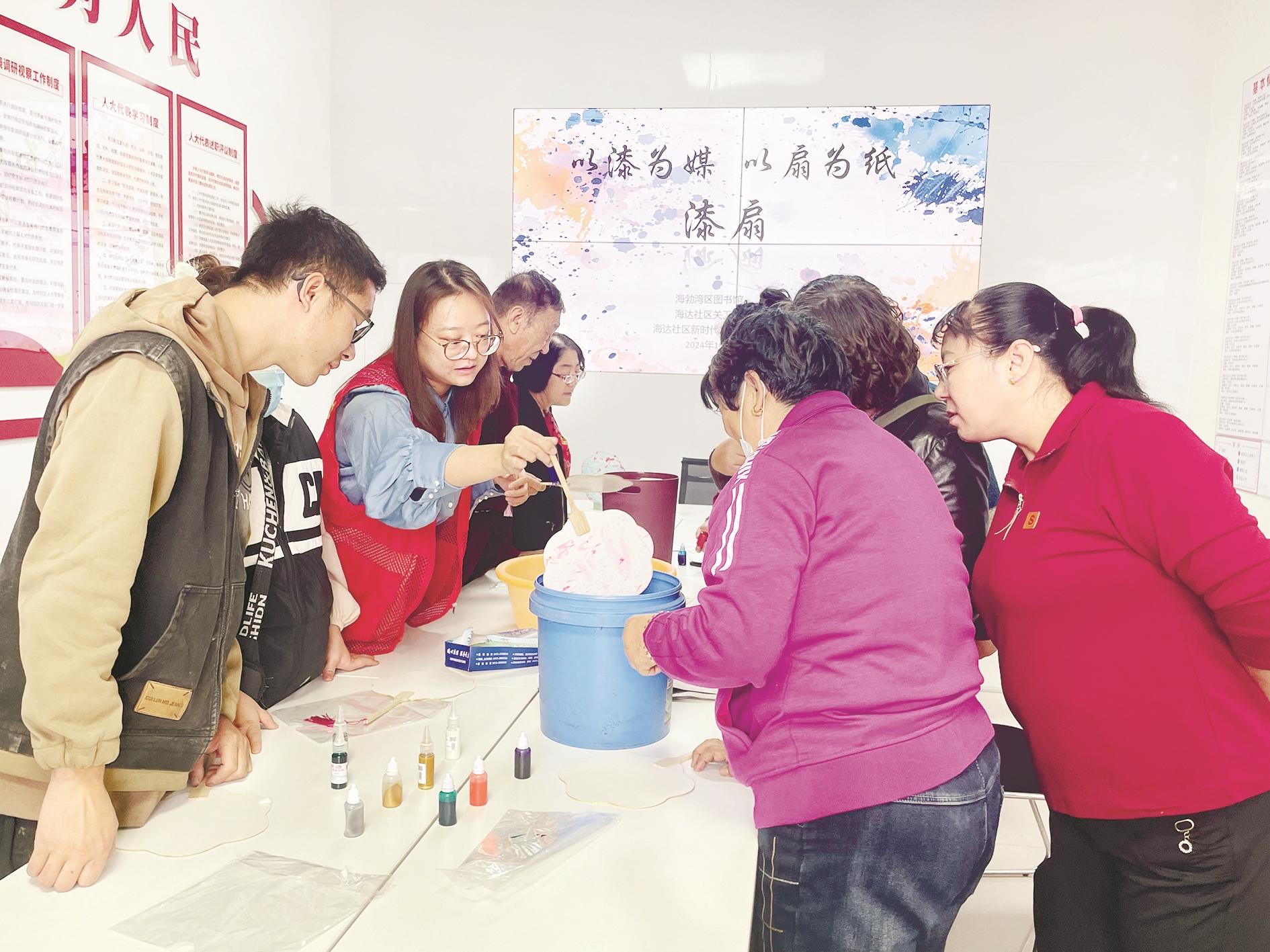 10月17日,“制扇至美,展非遗魅力”漆扇制作活动在海勃湾区新华西街道海达社区举办。活动中,工作人员为居民们详细介绍了漆扇艺术,系统讲解了漆扇的制作过程,居民们亲身体验了非遗漆扇手工技艺的魅力。(赵政宇 摄)