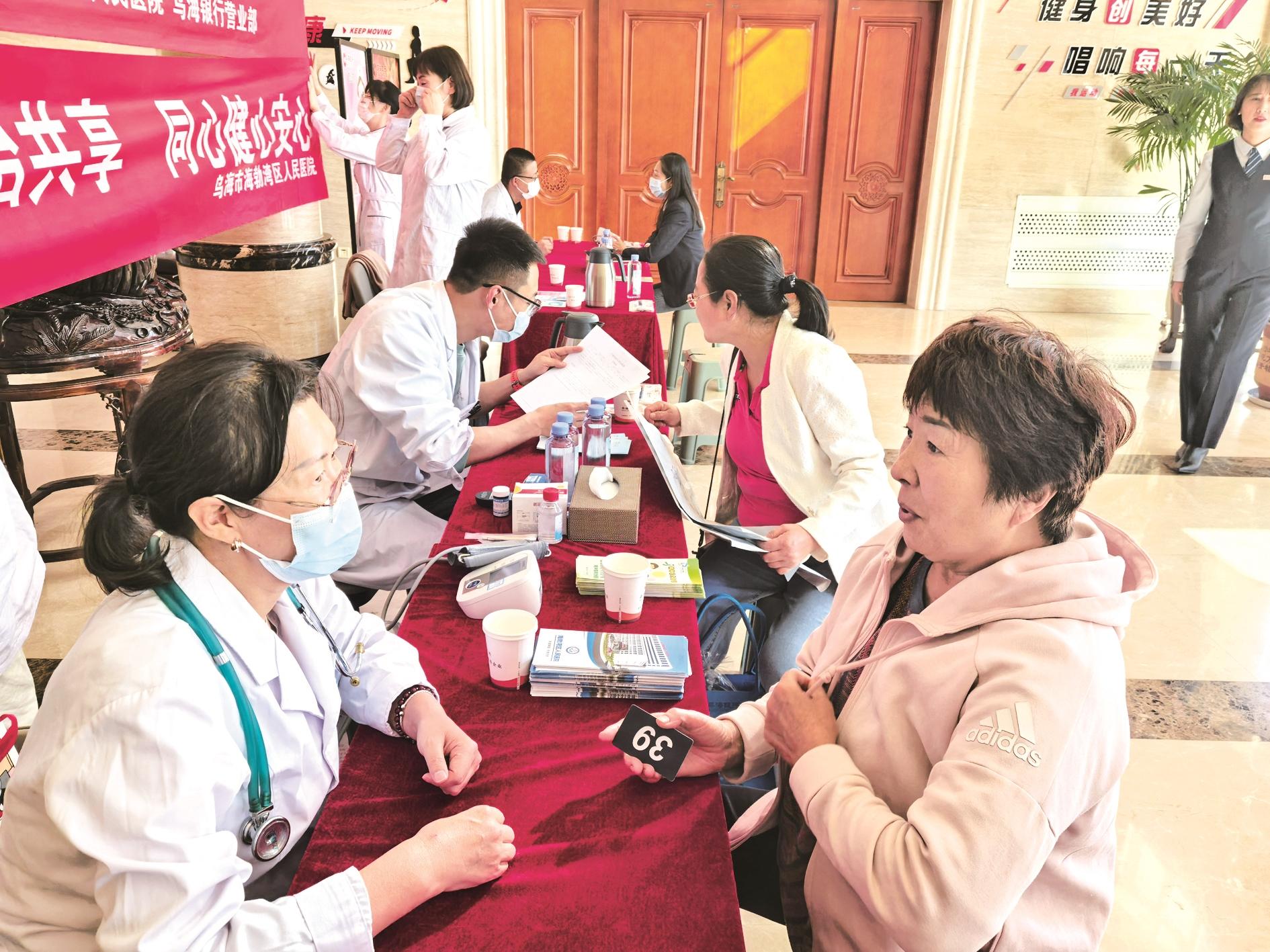 为提升老年人的健康意识和生活质量,增强与客户之间的互动,传递健康生活的理念,近日,乌海银行总行营业部特别邀请了海勃湾区人民医院的专家到厅堂为老年客户进行义诊活动。 (陈洋 摄)