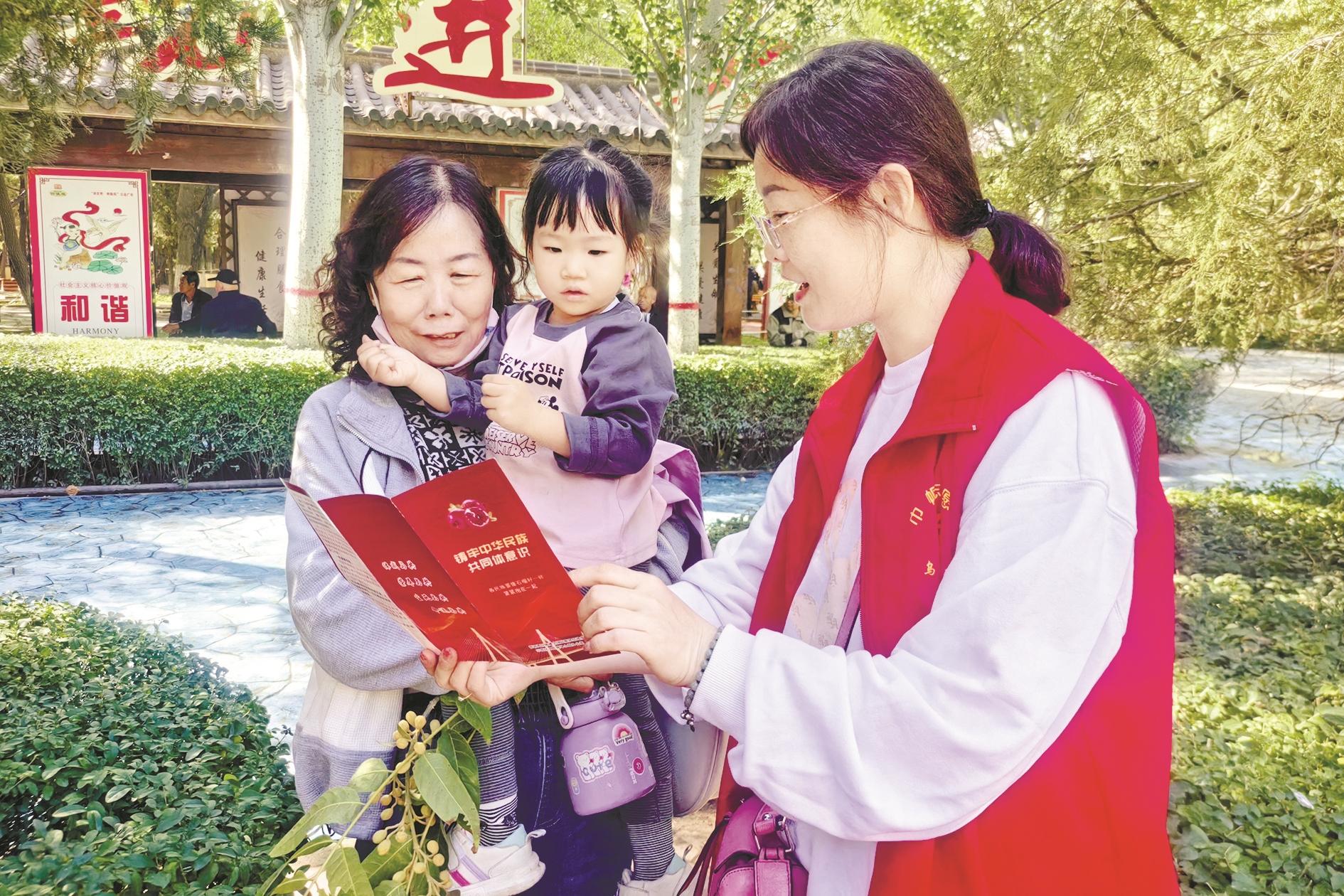 近日,海勃湾区新华街道新海社区开展了铸牢中华民族共同体意识宣传活动。活动中,社区志愿者、网格员来到公园、广场等人员密集场所,通过发放资料、现场讲解等形式,宣传党的民族政策和法律法规,积极营造民族团结进步的浓厚氛围。(黄建飞 摄)