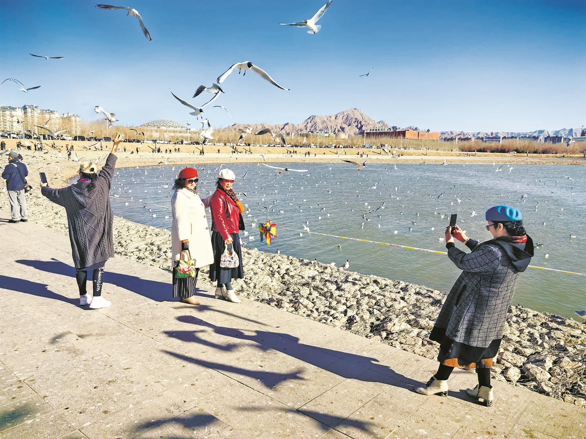 “每年一到这时候,我就开始期盼着红嘴鸥到来。前两天知道乌海湖来了红嘴鸥,心里就想着会像去年那样,千鸟飞翔,人鸥嬉戏。这不,一到周末我们就赶紧过来了,看到如此和谐的景象,真是太高兴了。”10月19日,专程从海南区赶到乌海湖畔看红嘴鸥的刘茜在欣赏的同时感慨道,“这几年,咱们乌海的水多了、美了,生态确实变好了。只有良好的水生态环境,才会吸引大批候鸟一次次来到乌海。”