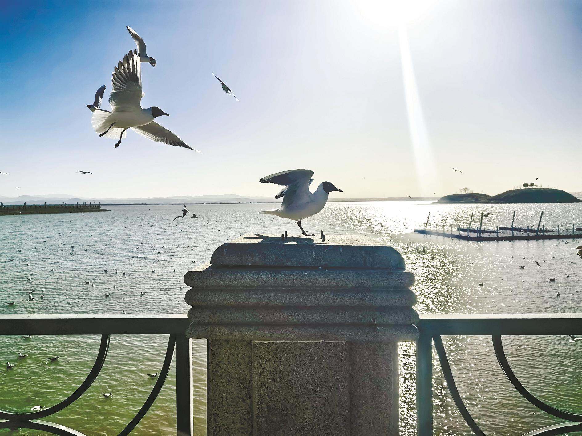 “老朋友们又回来啦……”连日来,乌海湖上的大批红嘴鸥再次成为市民、游客眼中的焦点。流传在网络的一张张照片、一段段视频里,远道而来的“老朋友”或休憩觅食,感受这舒适的栖息之地;或在湖面轻舞,姿态优雅;或于水岸盘旋,与人们亲密互动;或在苇丛穿梭,与周边美景相映成趣。