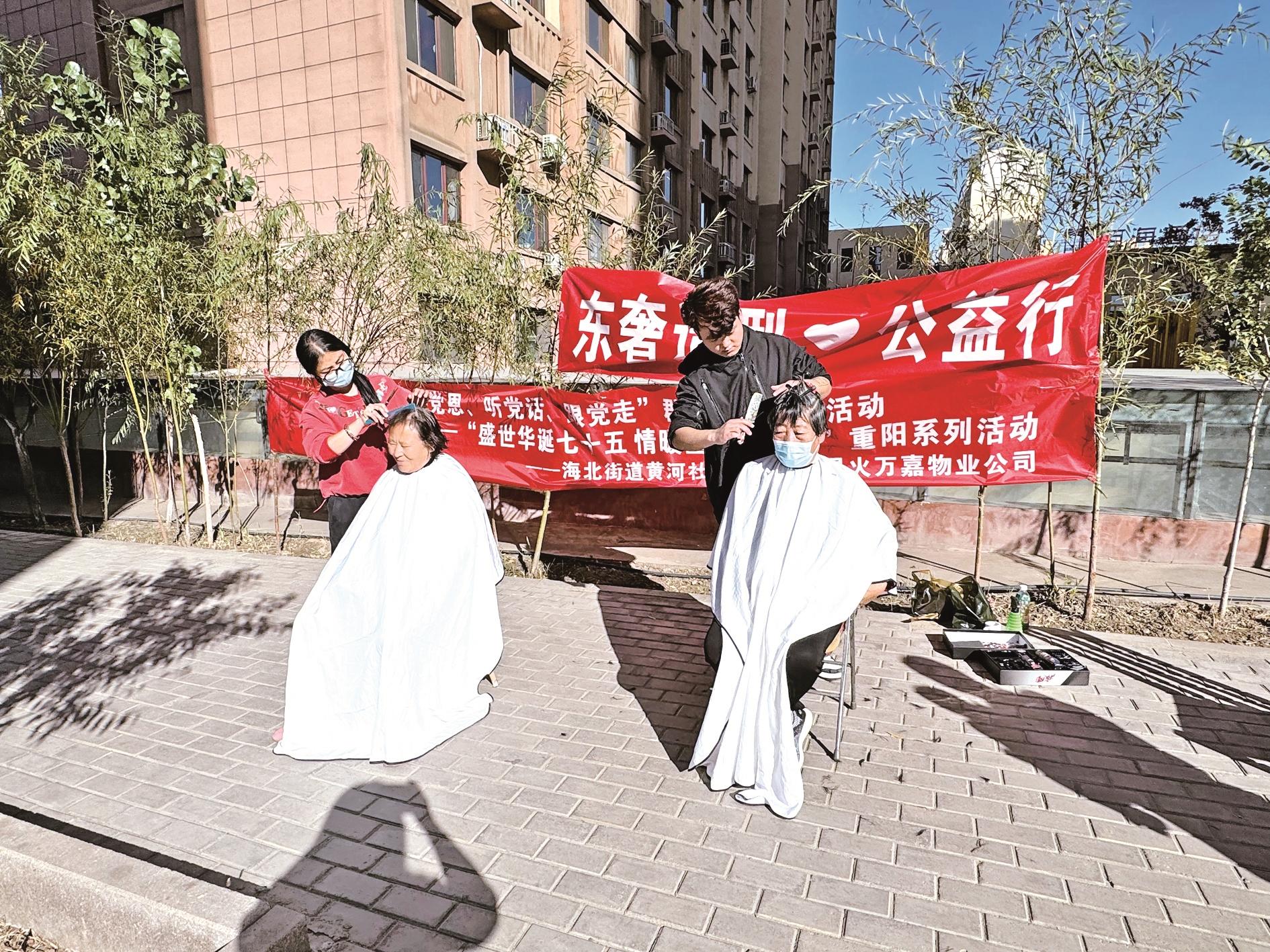 近日,海勃湾区海北街道黄河社区携手辖区爱心企业开展义剪志愿服务活动,用实际行动让老年人感受到社区的关怀与温暖。 (段维娜 摄)