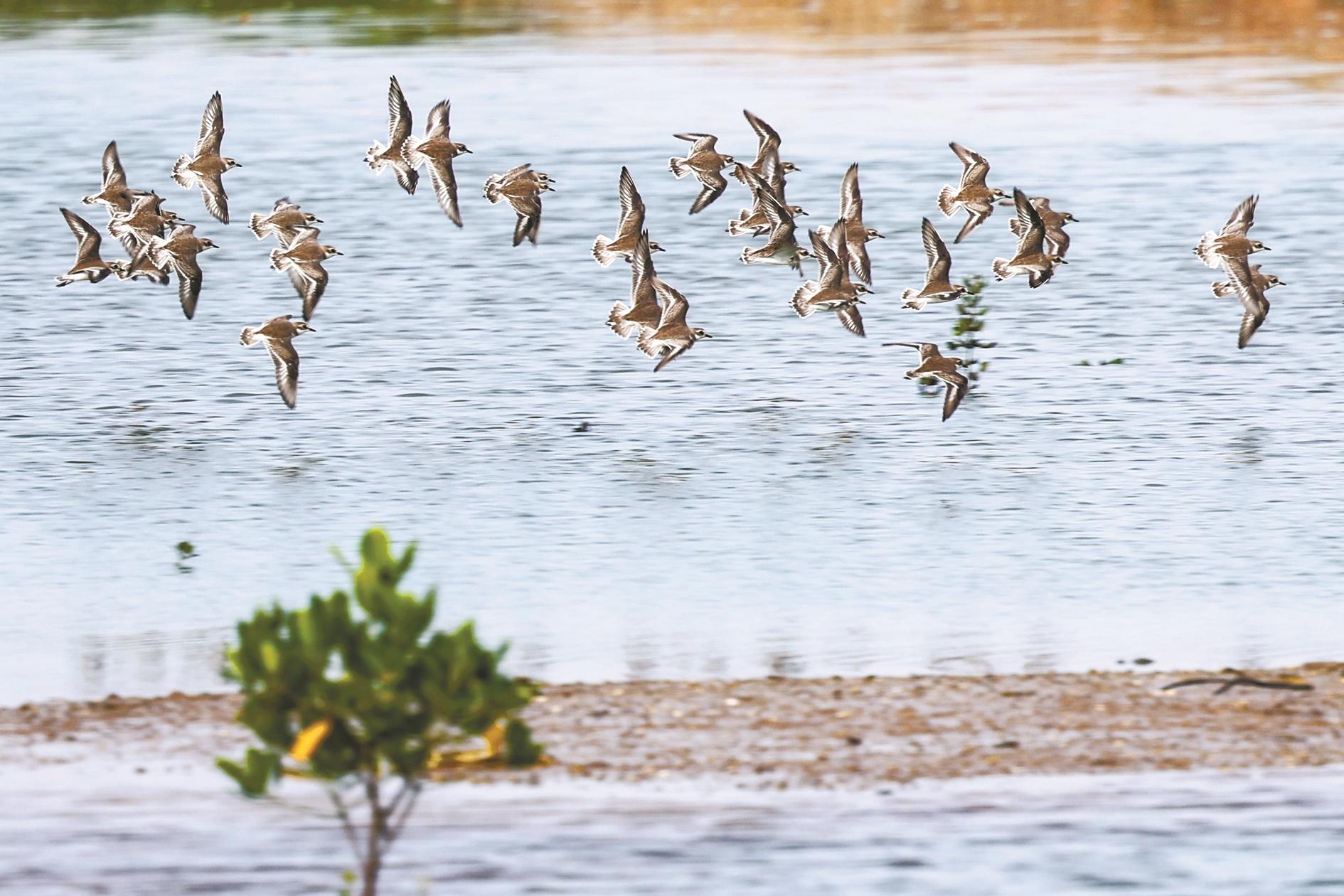 近年来,海南不断加强对湿地和鸟类的保护,生物多样性日益丰富,生态环境持续改善,吸引越来越多的候鸟前来栖息越冬。